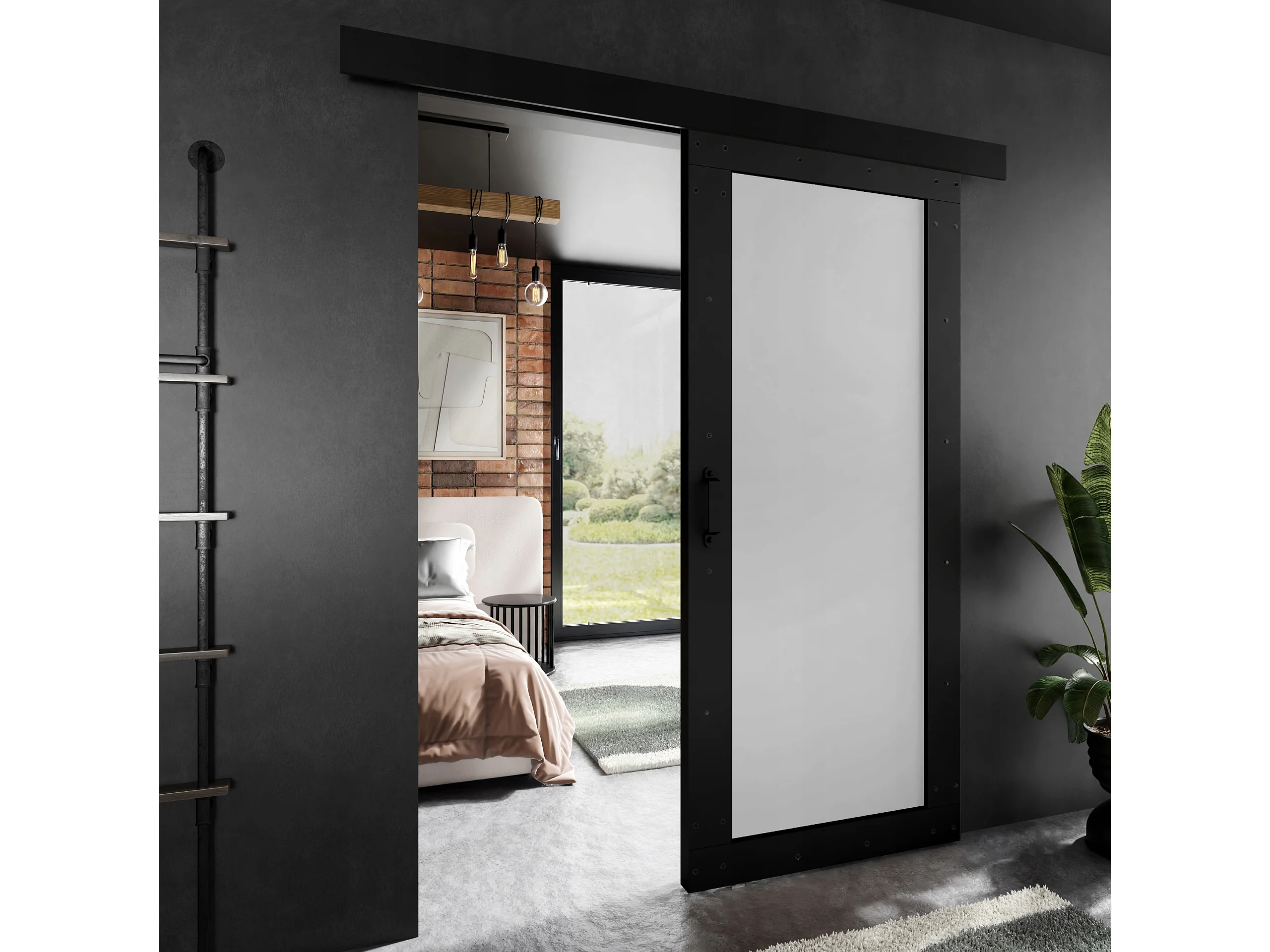 Schuifdeur ADIO 2 met afdeklijst zwart en wit 90