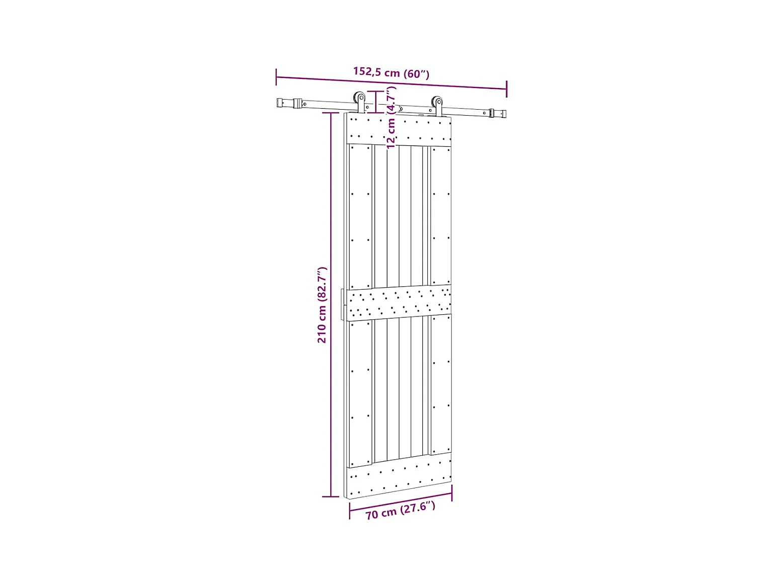 Schuifdeur en beslagset 70x210 cm massief grenen