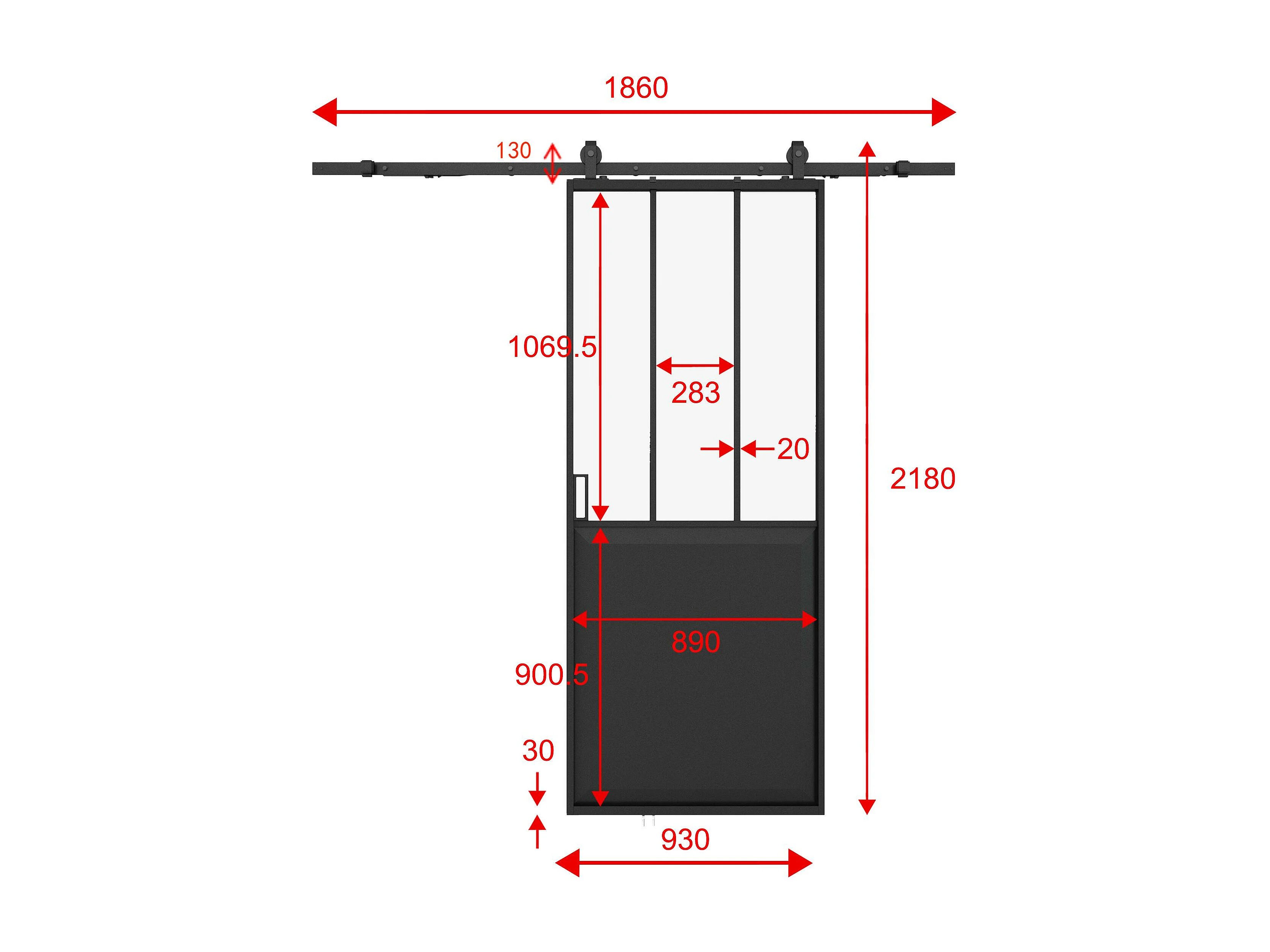 Schuifdeur in atelierstijl met opbouwsysteem - Zwart en gehard glas - H205 x L93 cm - ARTISTO II