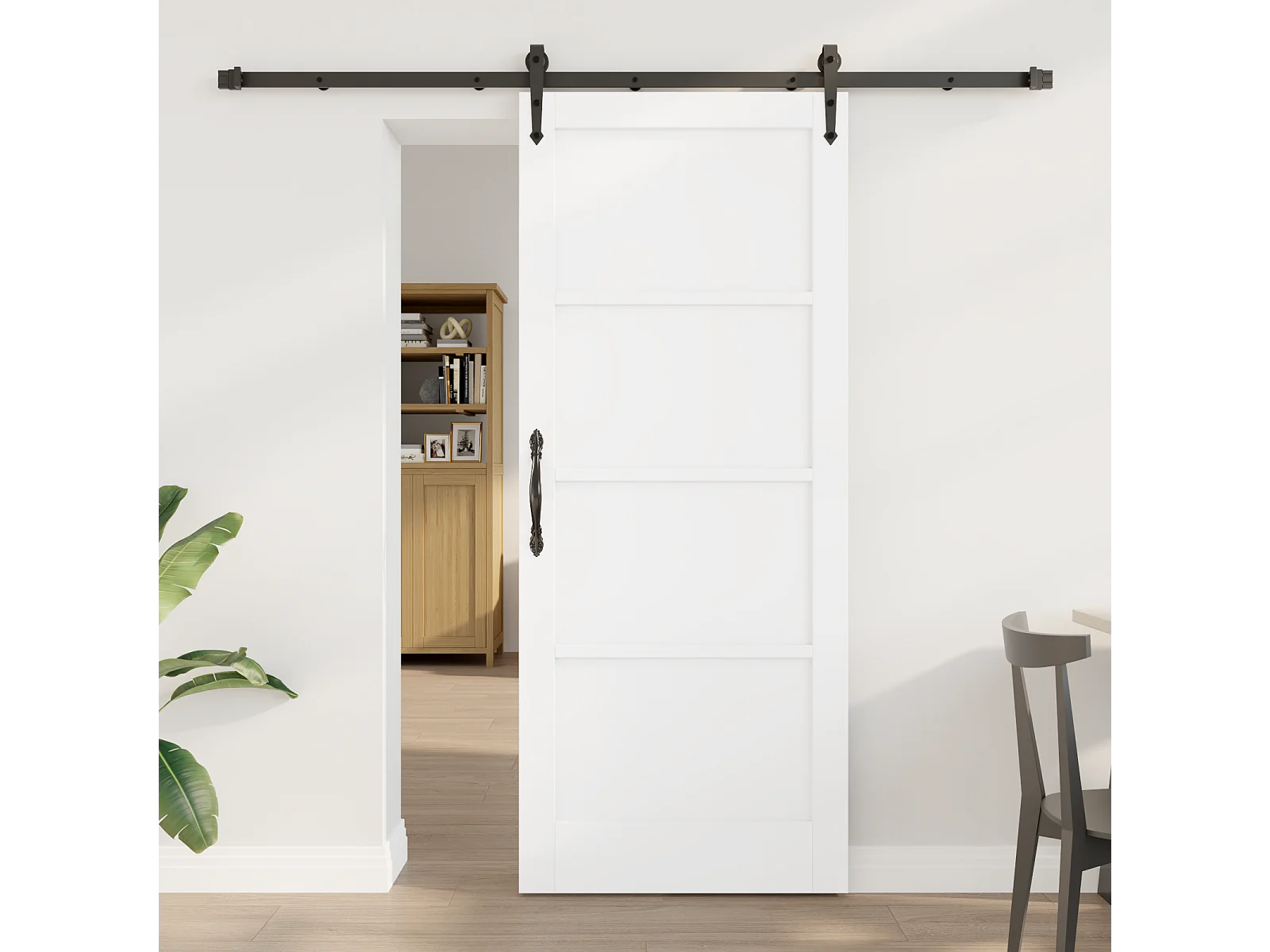 Schuifdeur met beslag in wit massief grenenhout