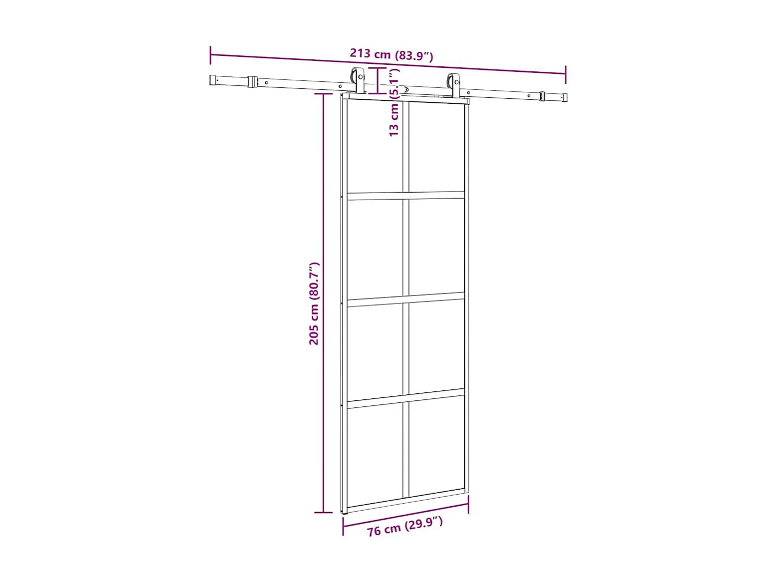 Schuifdeur ESG glas en aluminium 76x205 cm Zwart