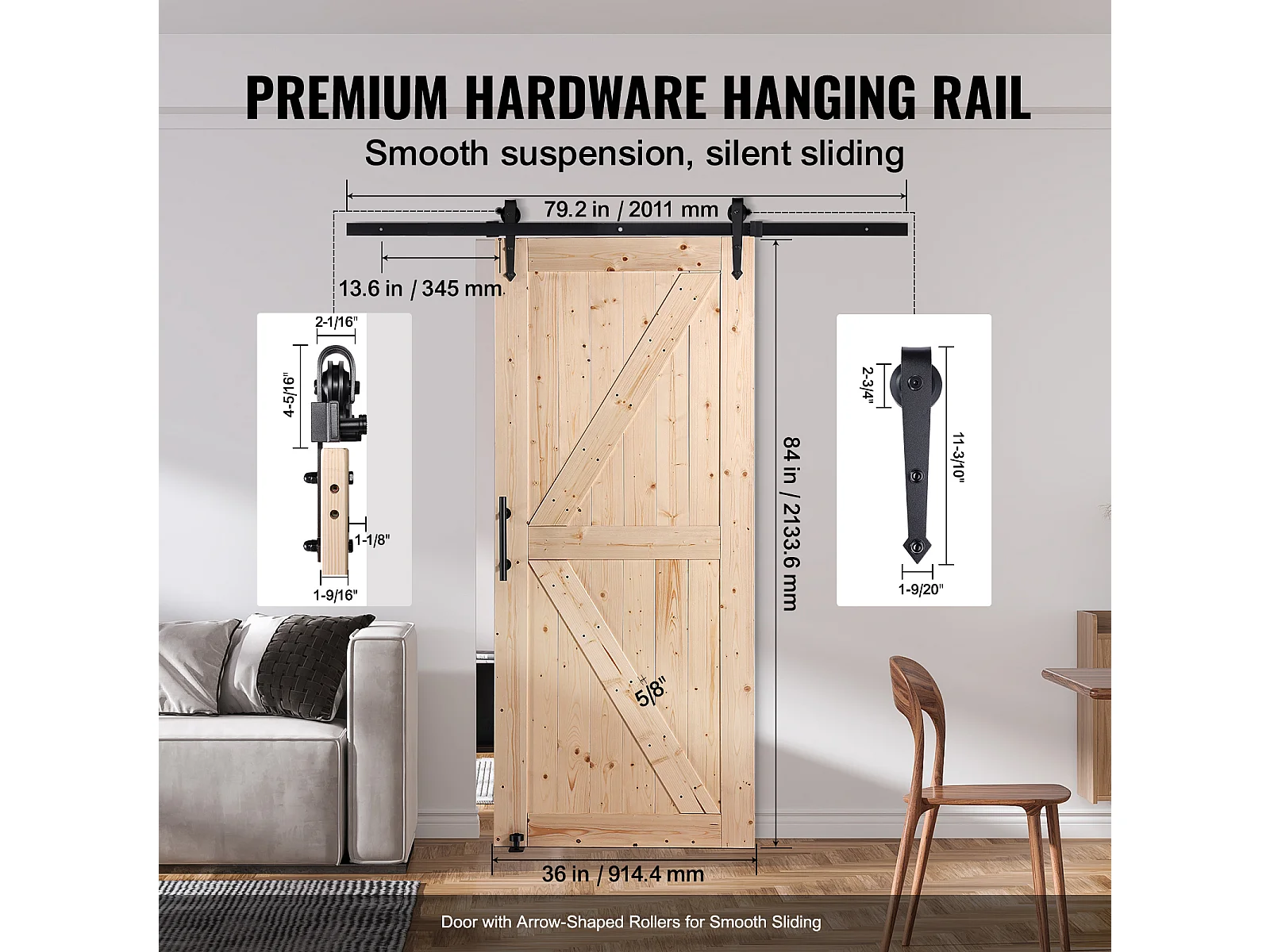 Schuurdeurkit SucceBuy, 91 x 213 cm, Gleufdeur van Spar, Rail en 8-in-1 Hendel, Eenvoudige Installatie