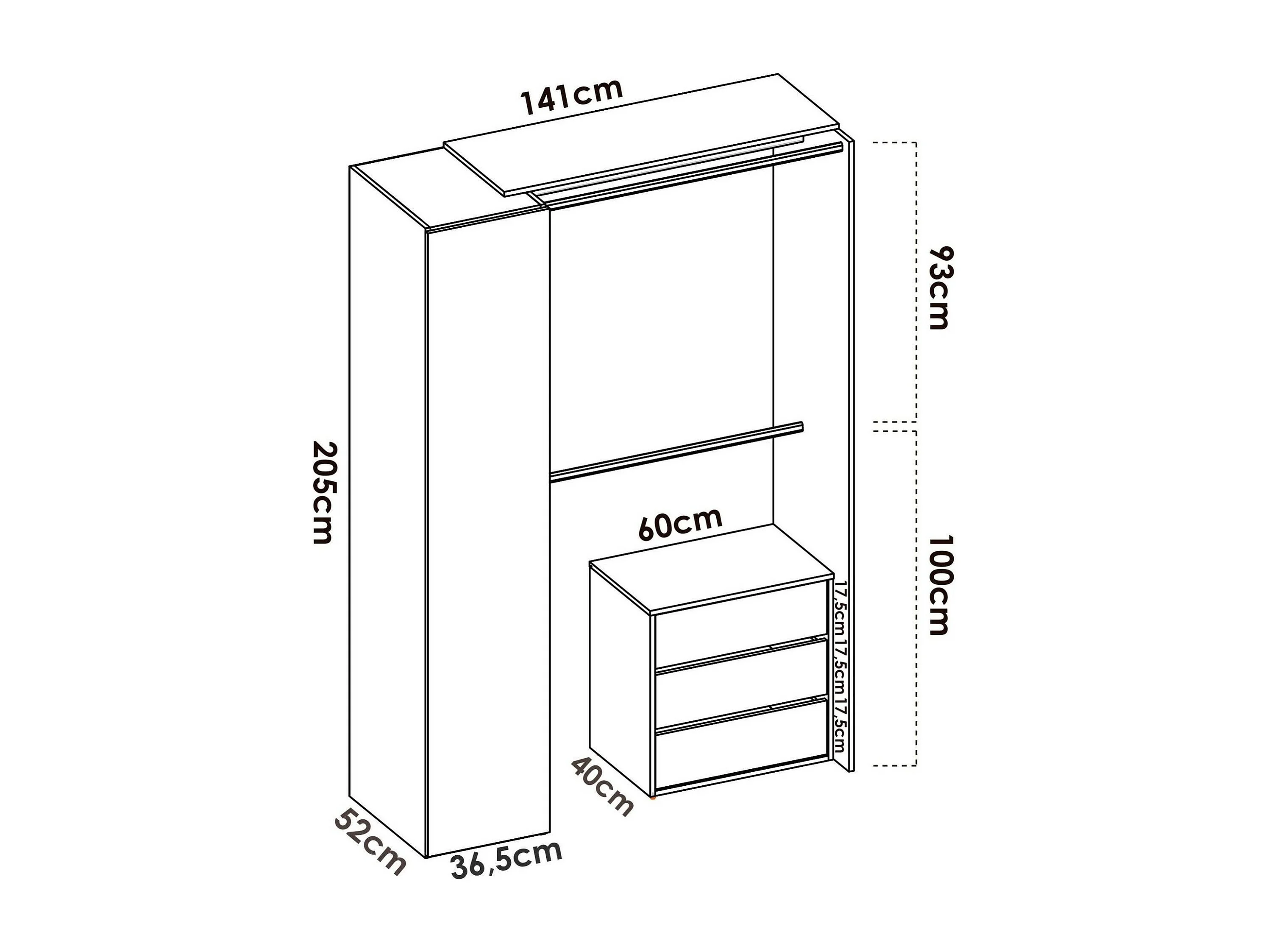Dmora Grote Kledingkast Sciliar 52x205h cm Wit 3 Laden 4 Planken, Slaapkamerkast Kledinghanger