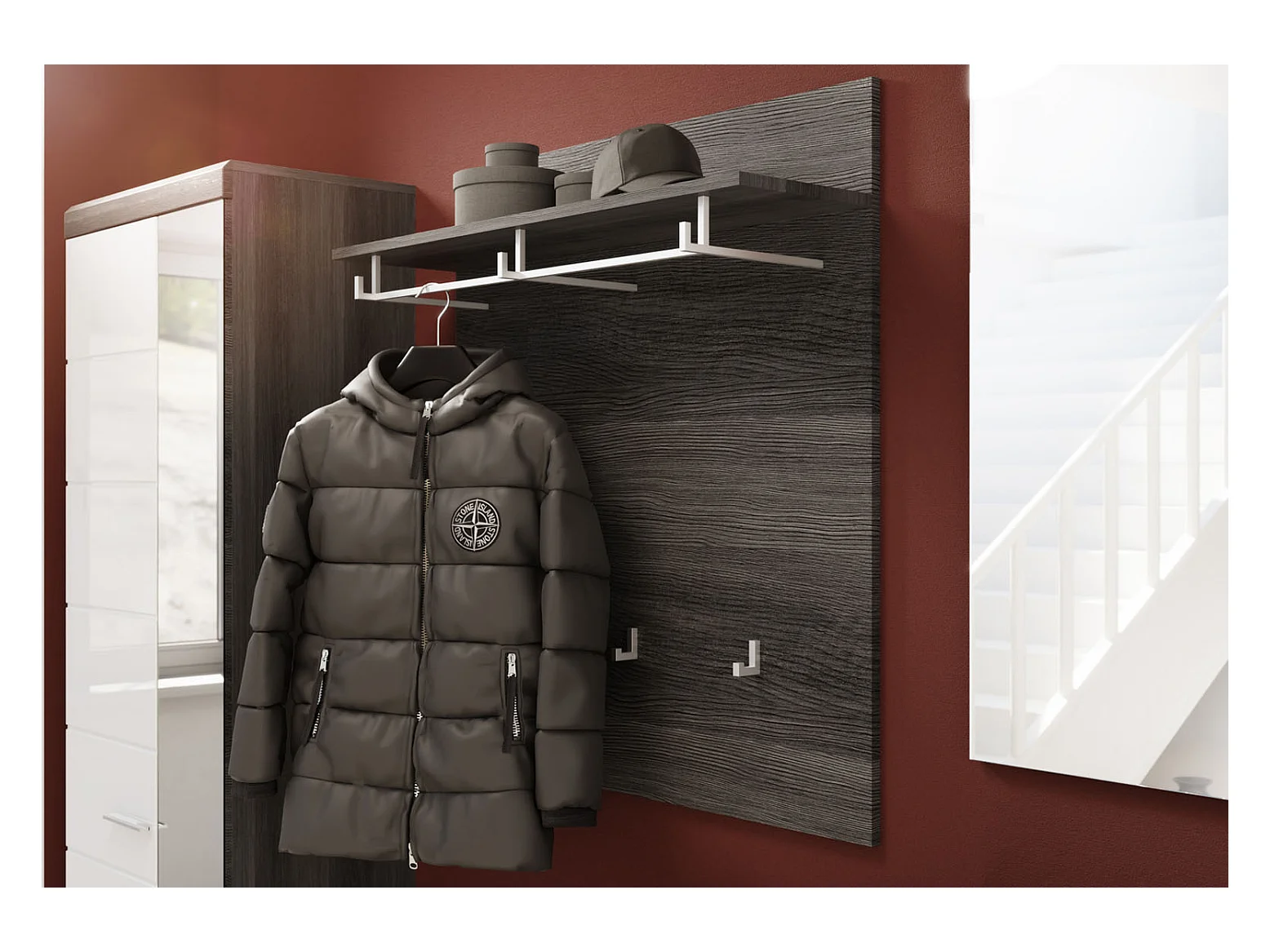 Irwin kapstok 1 plank, 1 kledingstang en 3 haken, grijs Matera decor, Old Wood decor.