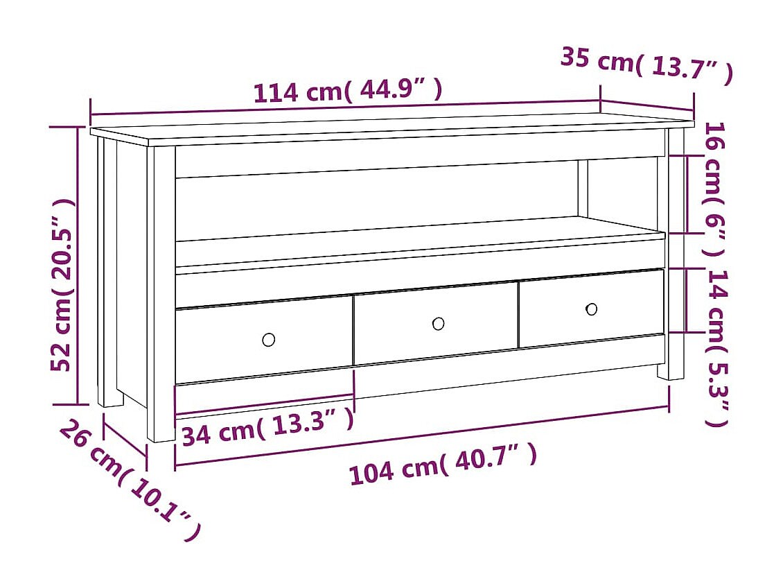 Selim Tv-meubel 114x35x52 cm massief grenenhout zwart
