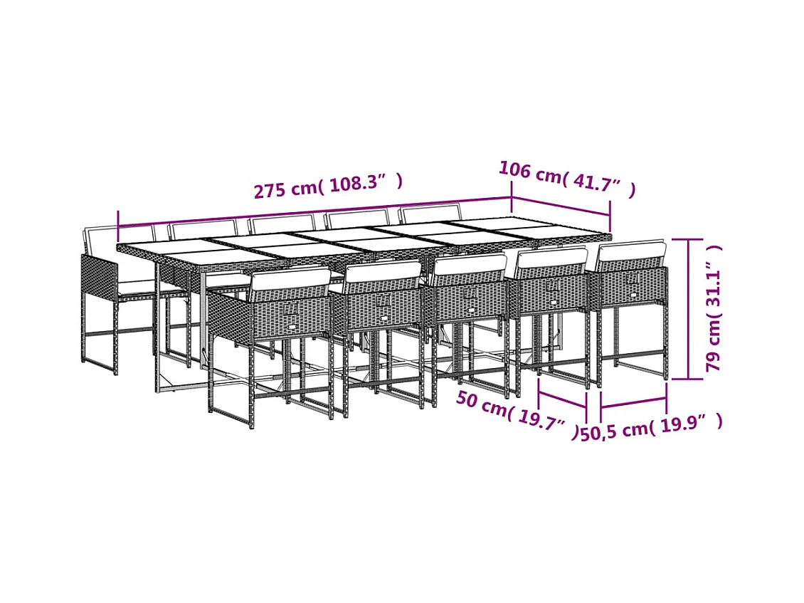 Laura Lucía 15-delige Tuinset met kussens poly rattan zwart