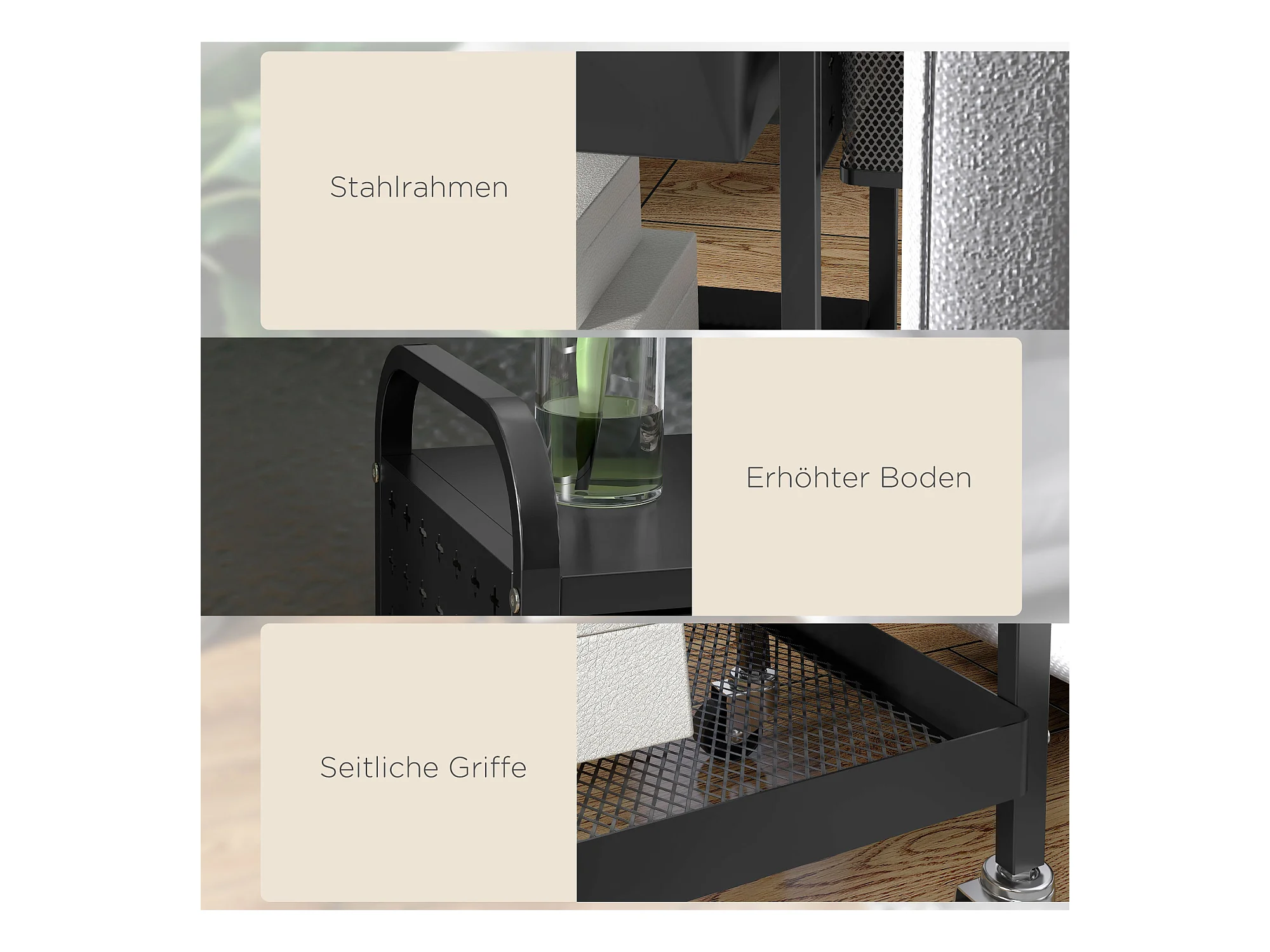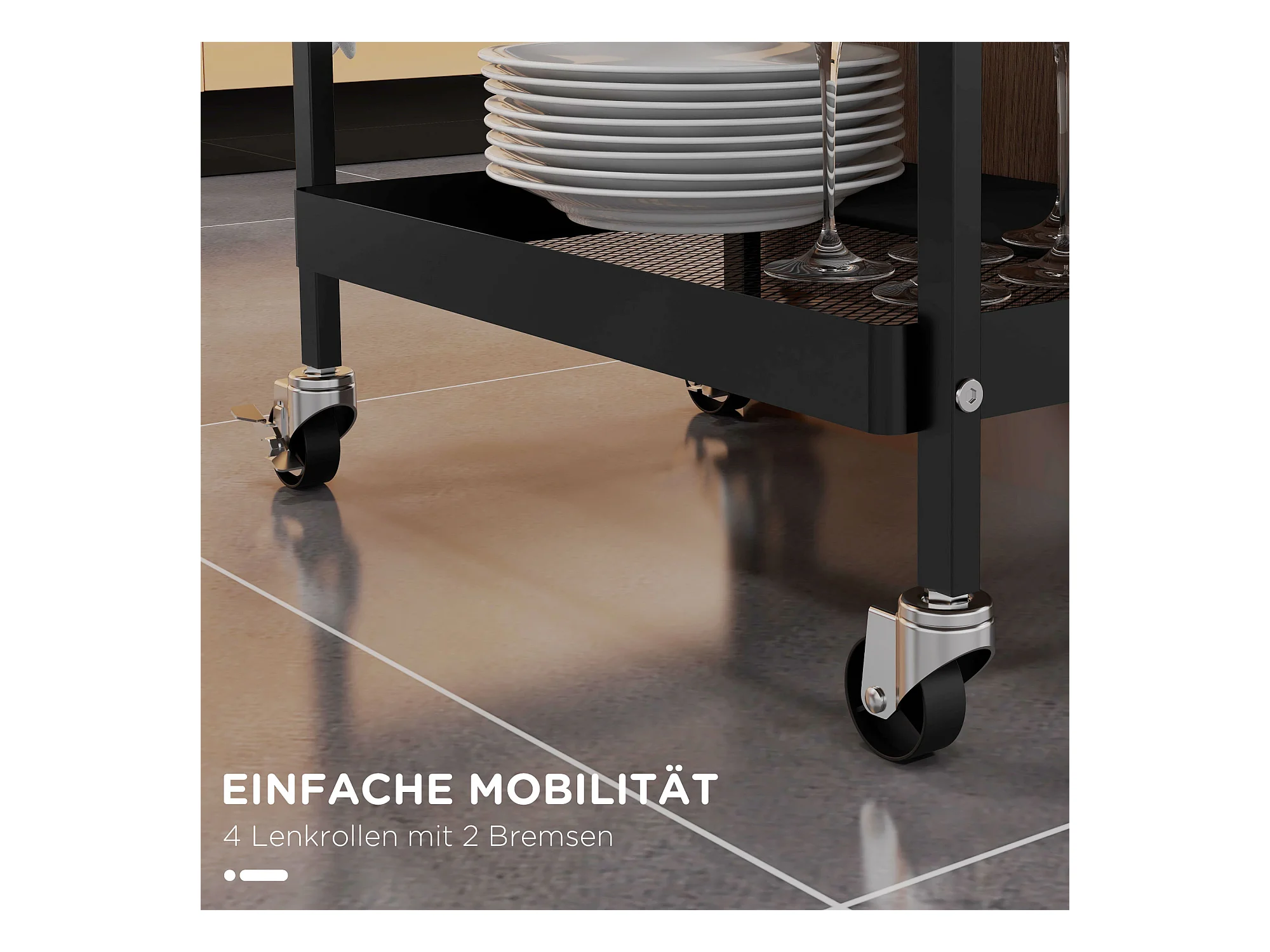 Serveerwagen met 3 niveaus, wielen met rem, zwart metaal, voor keuken, kantoor en badkamer (42,4 x 29,8 x 74,5 cm)