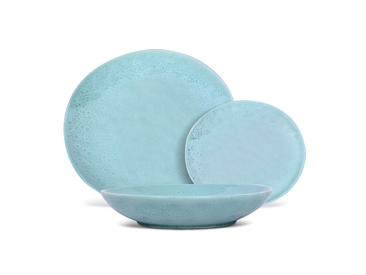 Servies SIA van gehamerde faience OLGA - 12 stuks - Lichtblauw