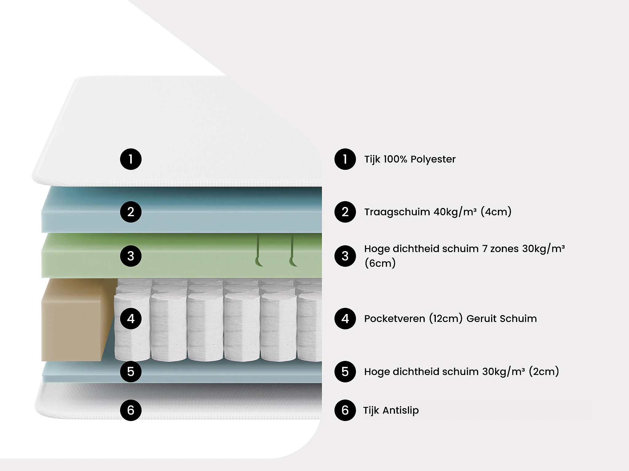• Dubbele toplaag van traagschuim en schuim met 7 zones