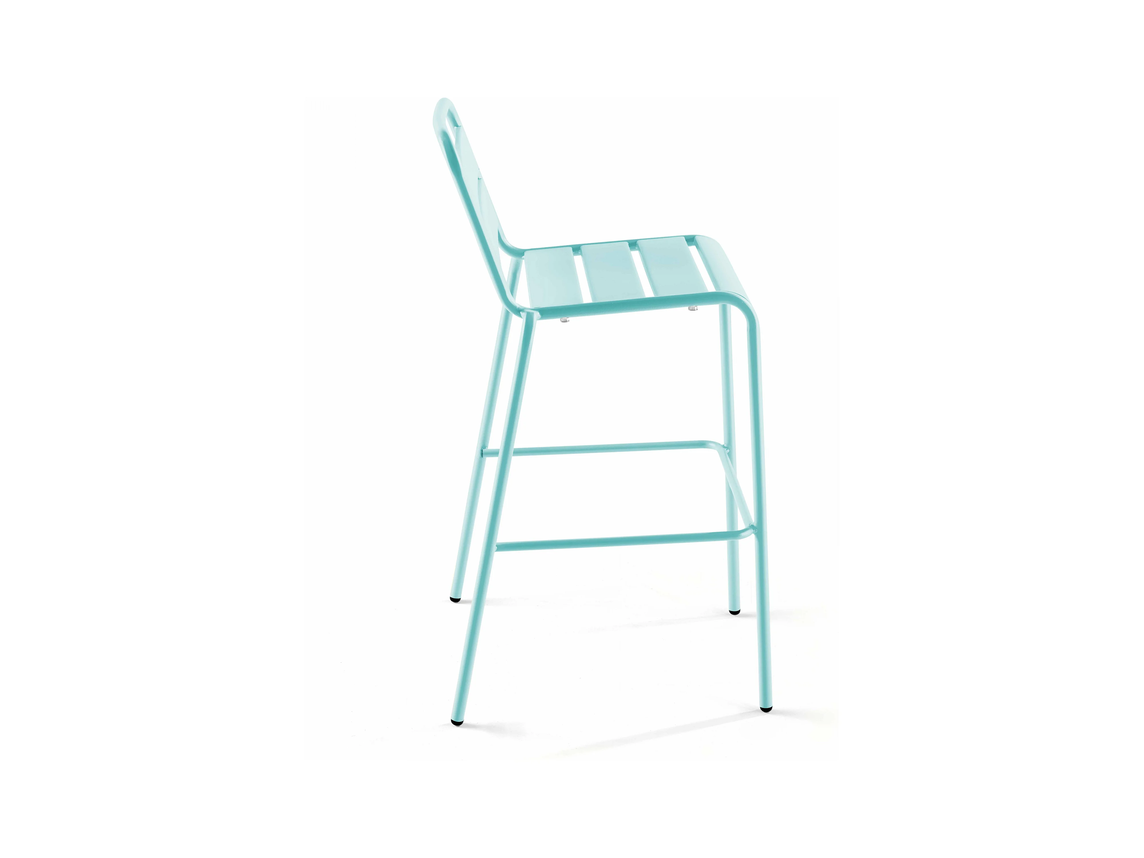 Set hoge tafel en 4 barkrukken in blauw pacific metaal