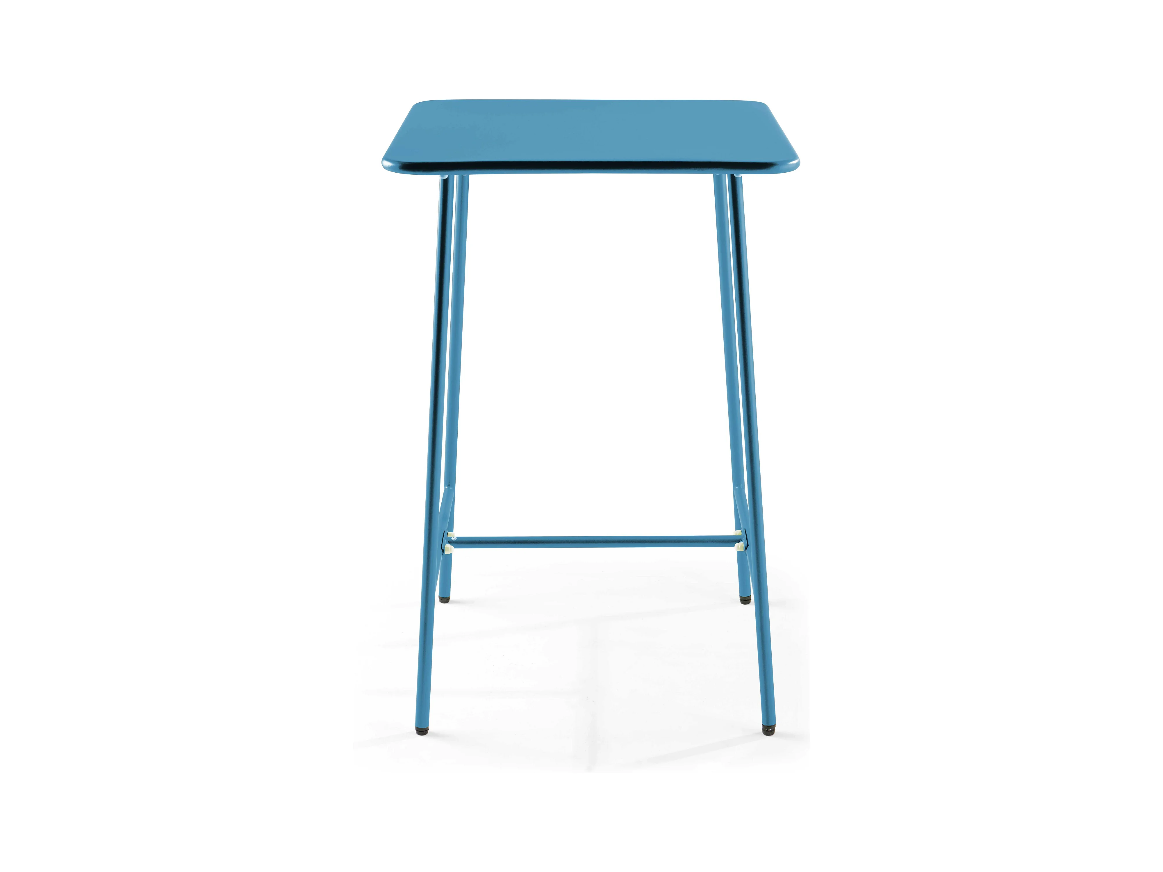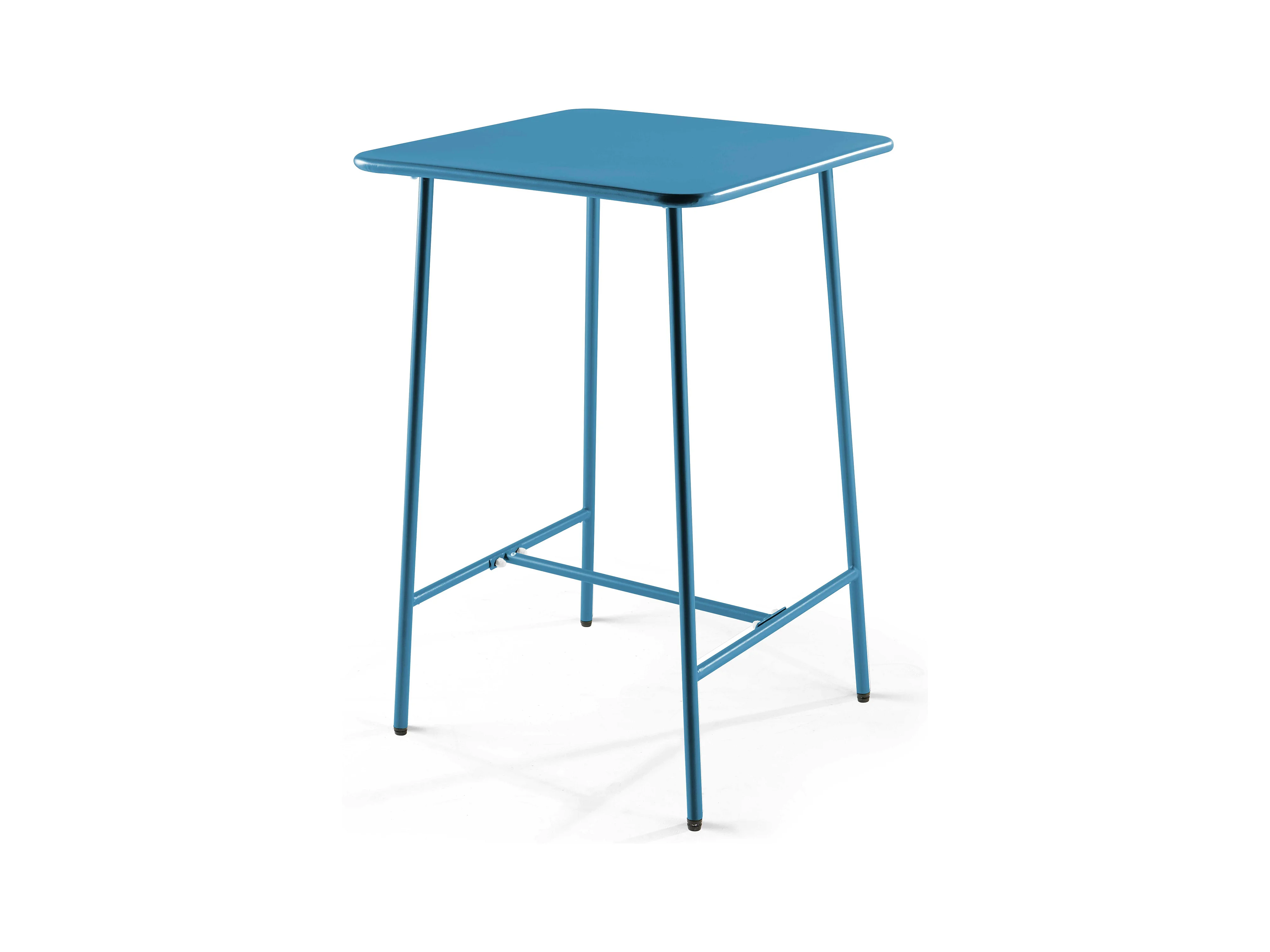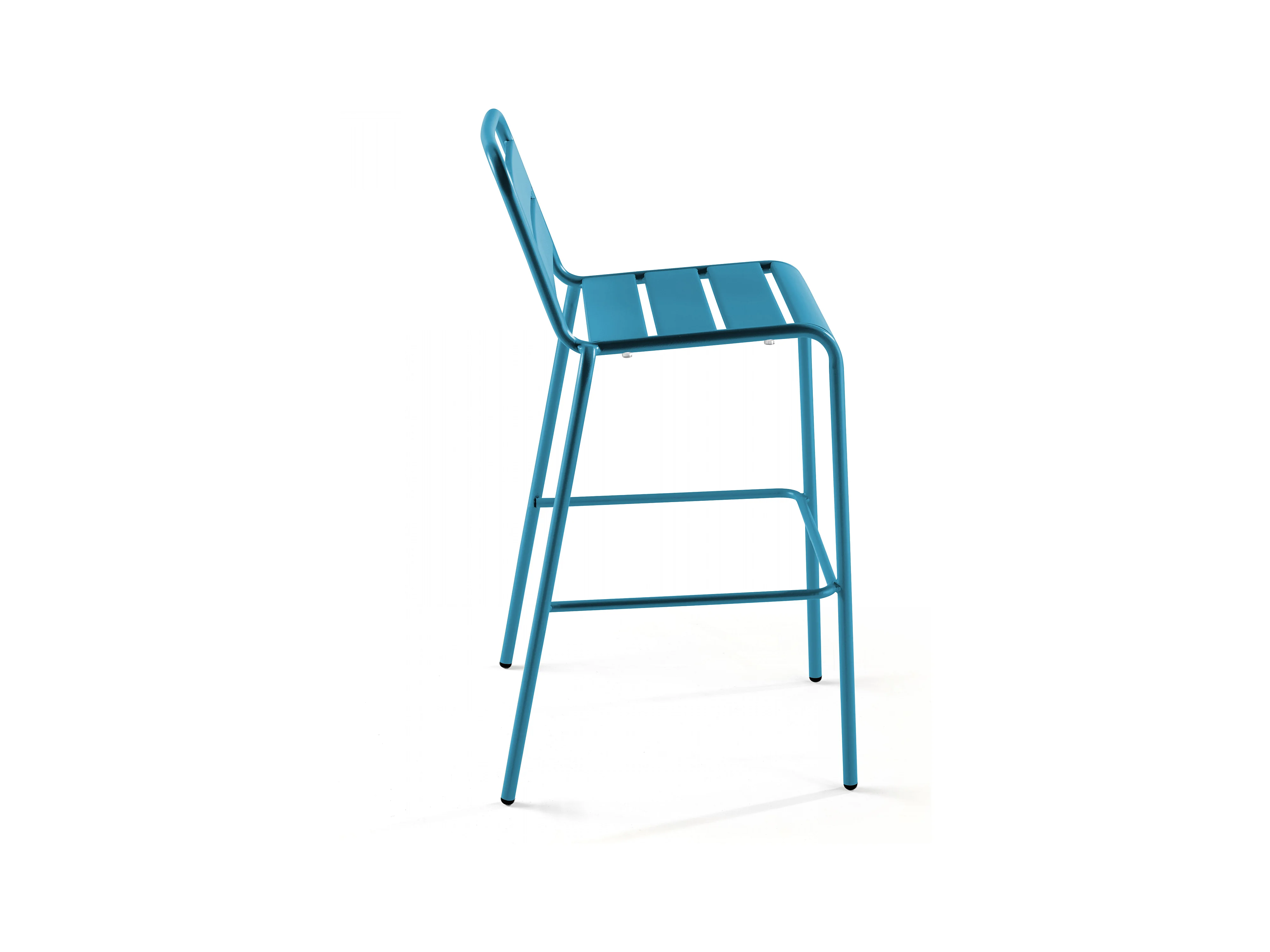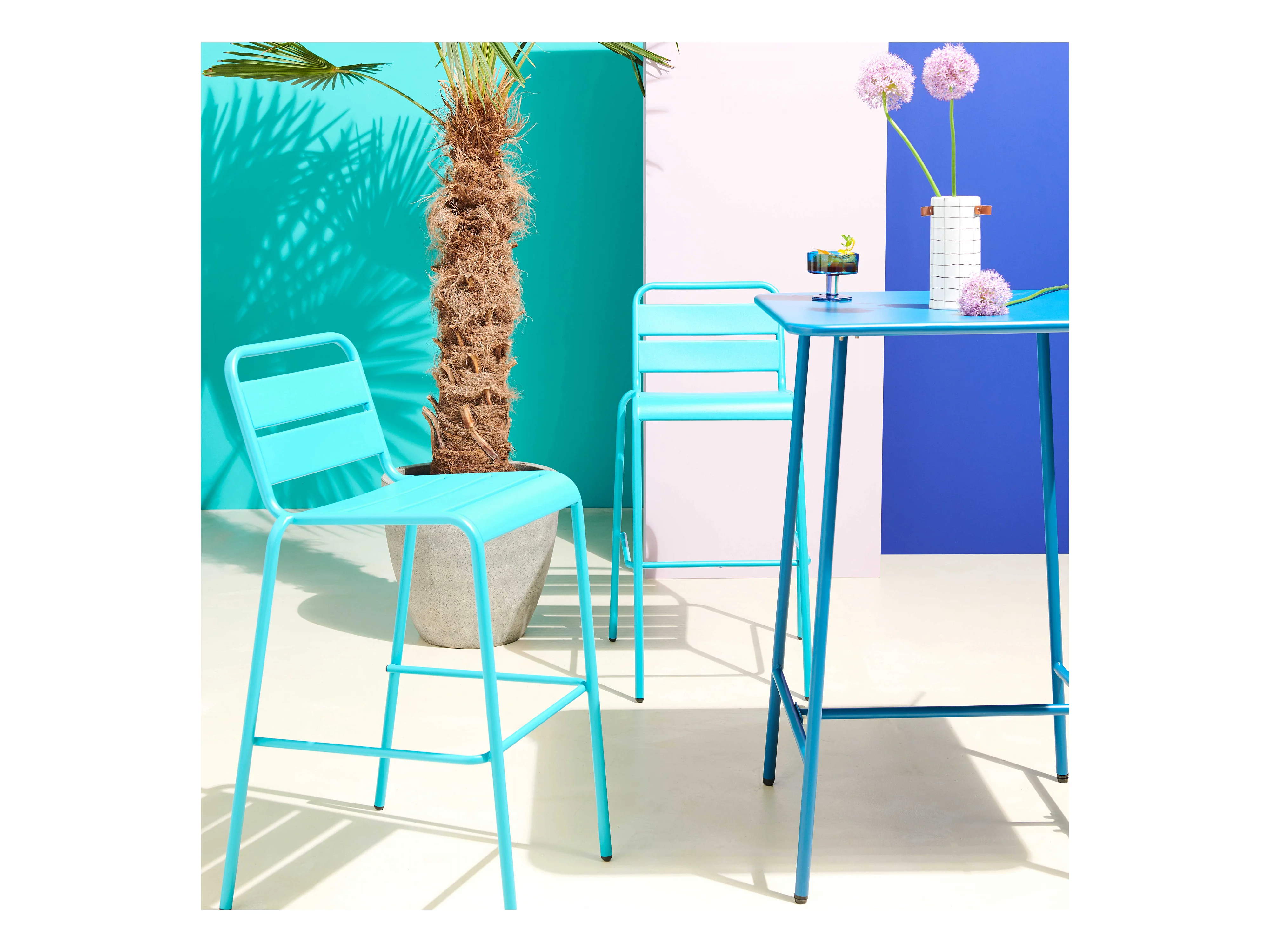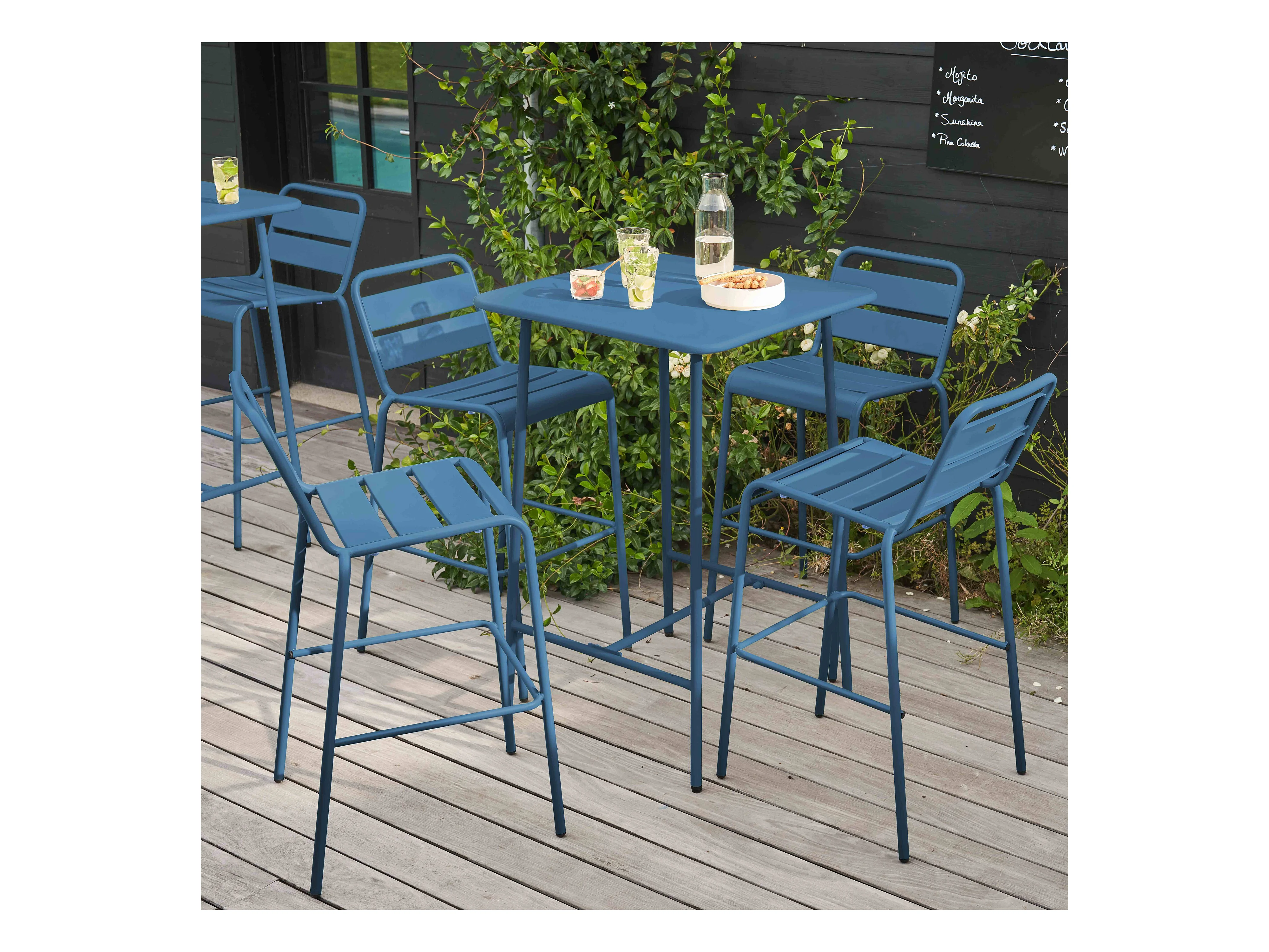 Set bartafel en 4 hoge stoelen van blauw pacifisch metaal