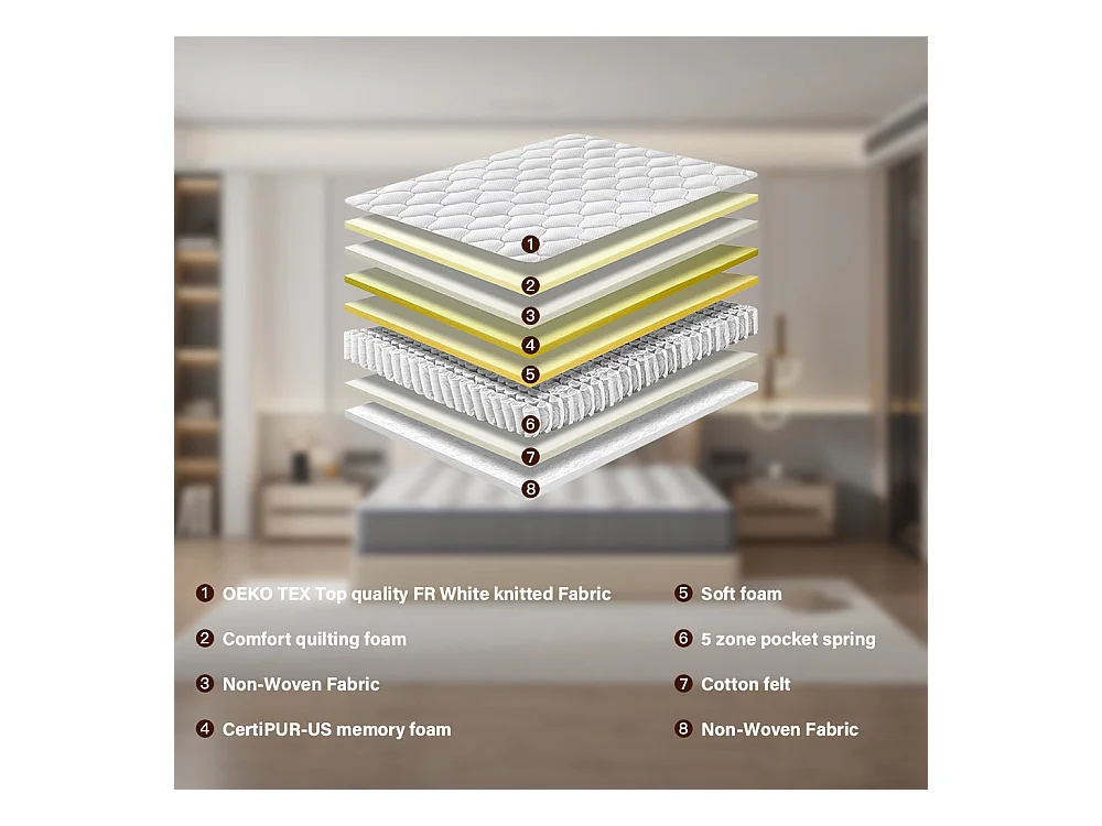 Tweepersoonsmatras van 17 cm dik schuim + lattenbodem van 160 x 200 cm met 18 rijen latten