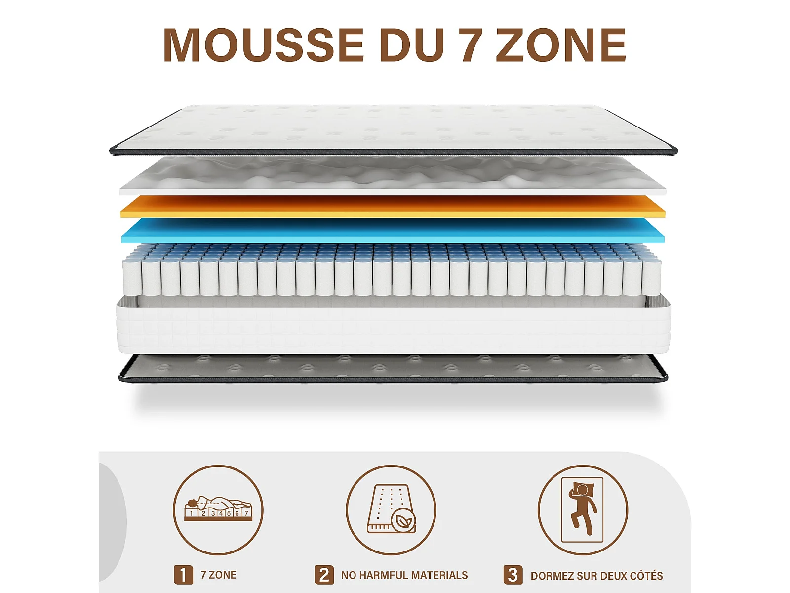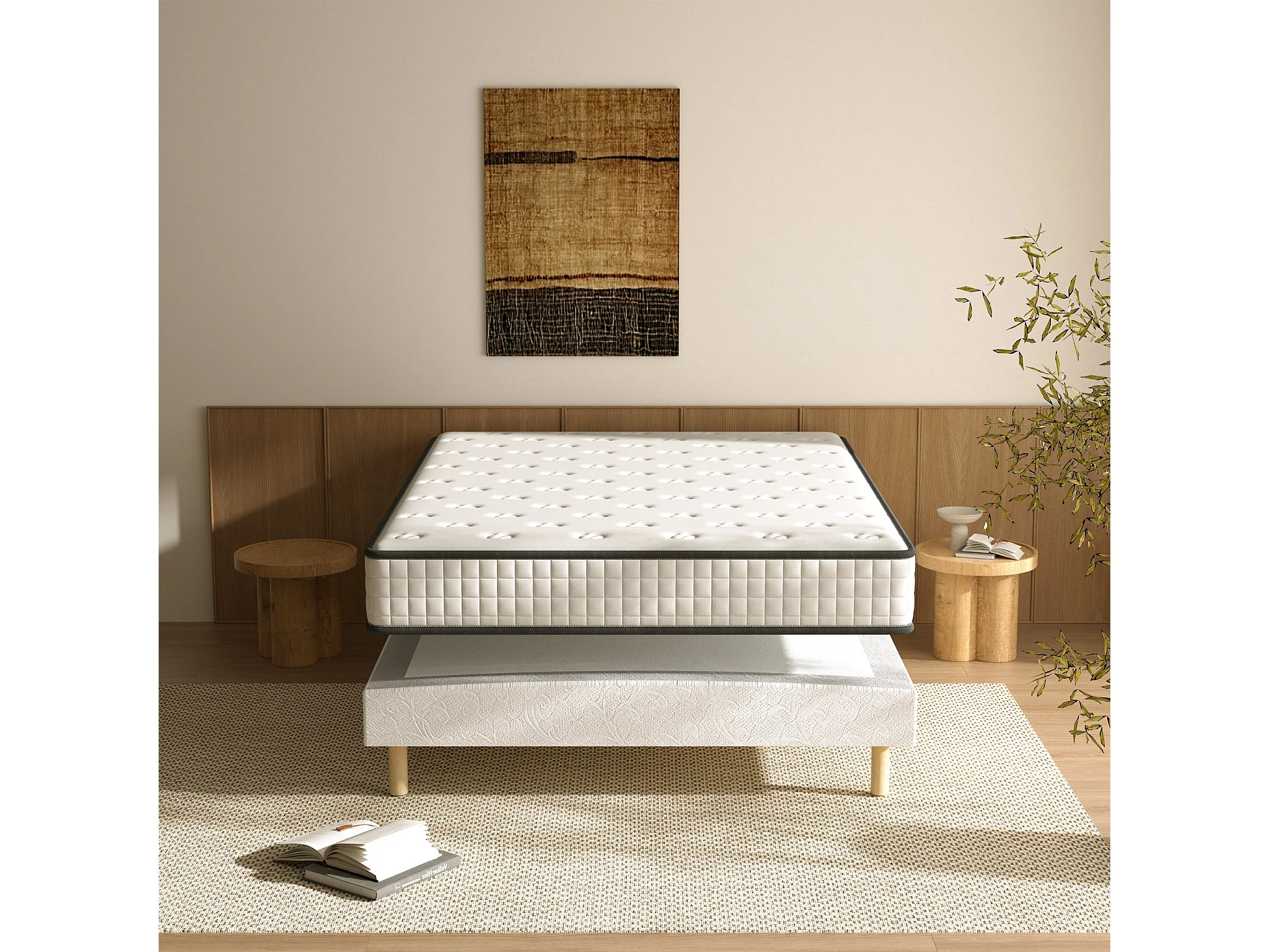 Set schuimmatras + gestoffeerd bedframe 140 x 190 cm, dikte matras 22 cm