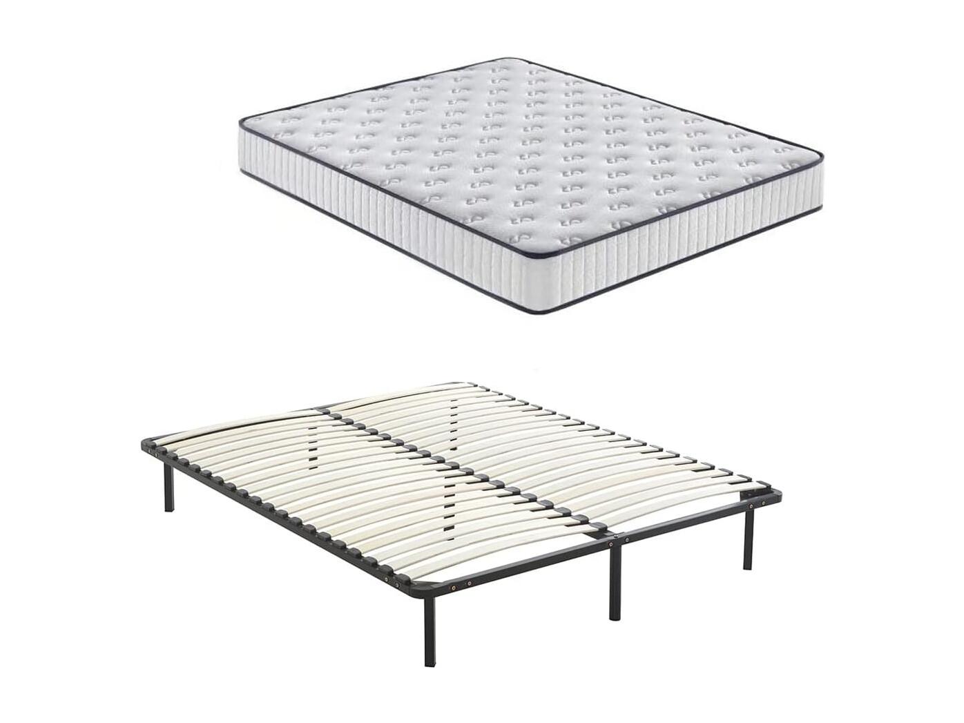 Set met tweepersoonsmatras van 17 cm dik schuim + lattenbodem met brede latten 160x200 cm