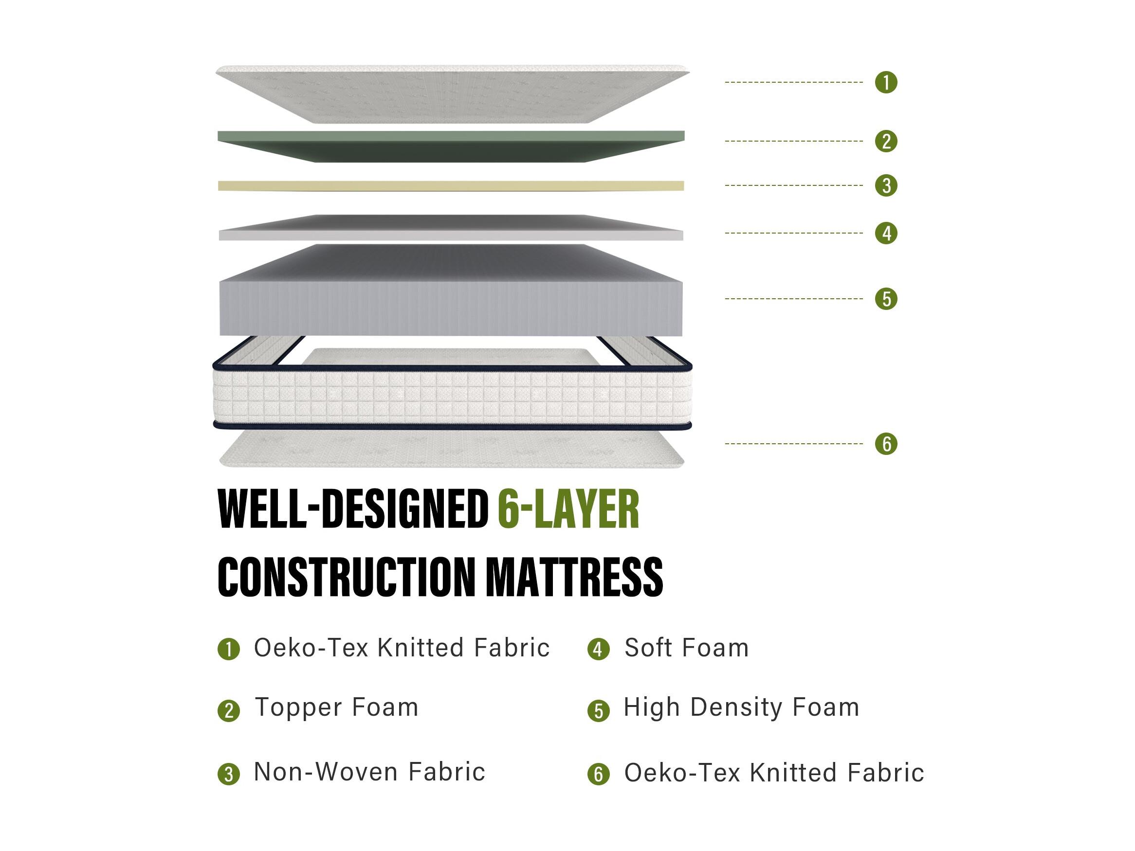 Tweepersoonsmatras van 17 cm dik schuim + lattenbodem van 160 x 200 cm met 18 rijen latten
