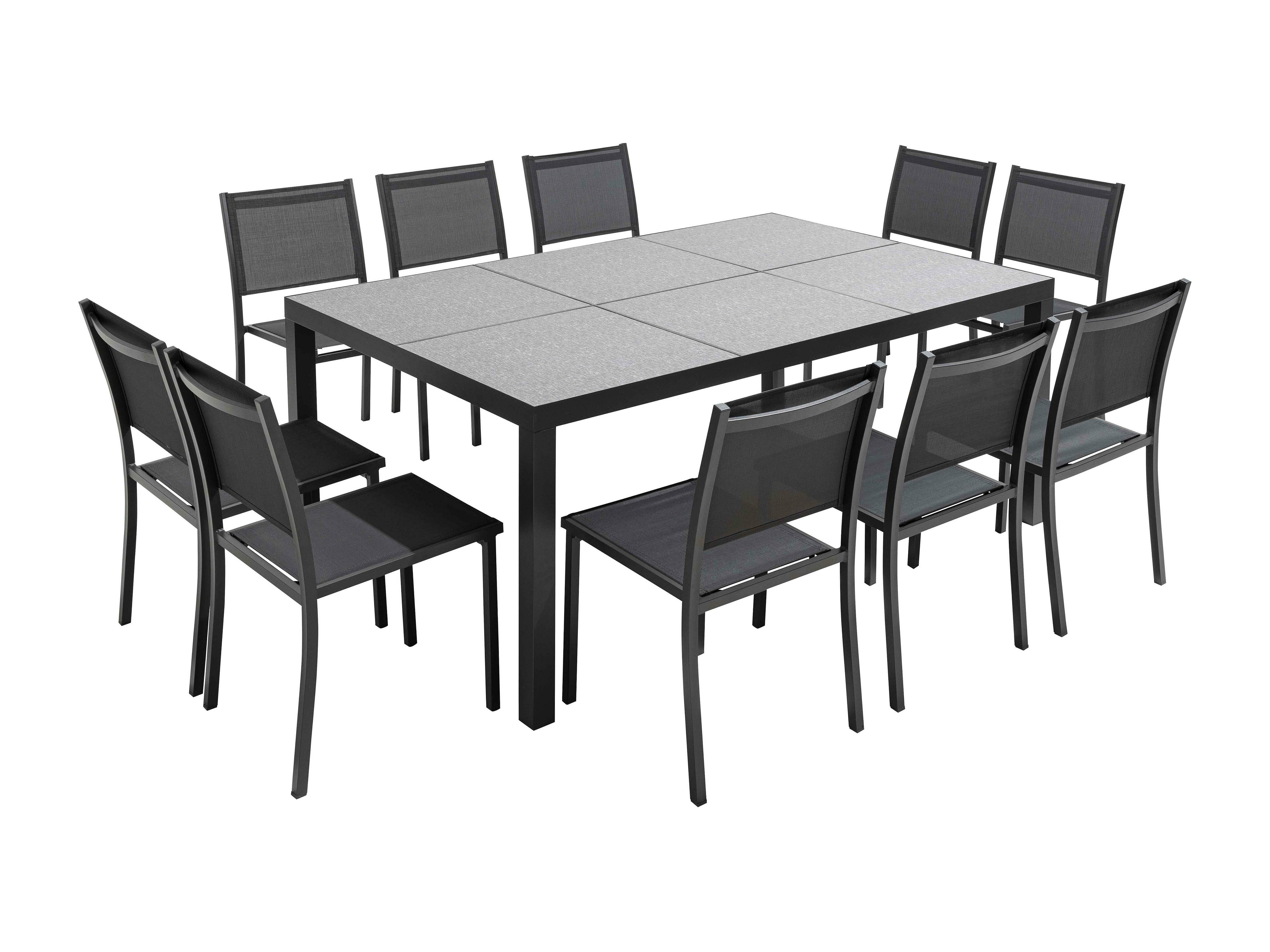 Set tafel en stoelen 10 plaatsen keramiek grijs