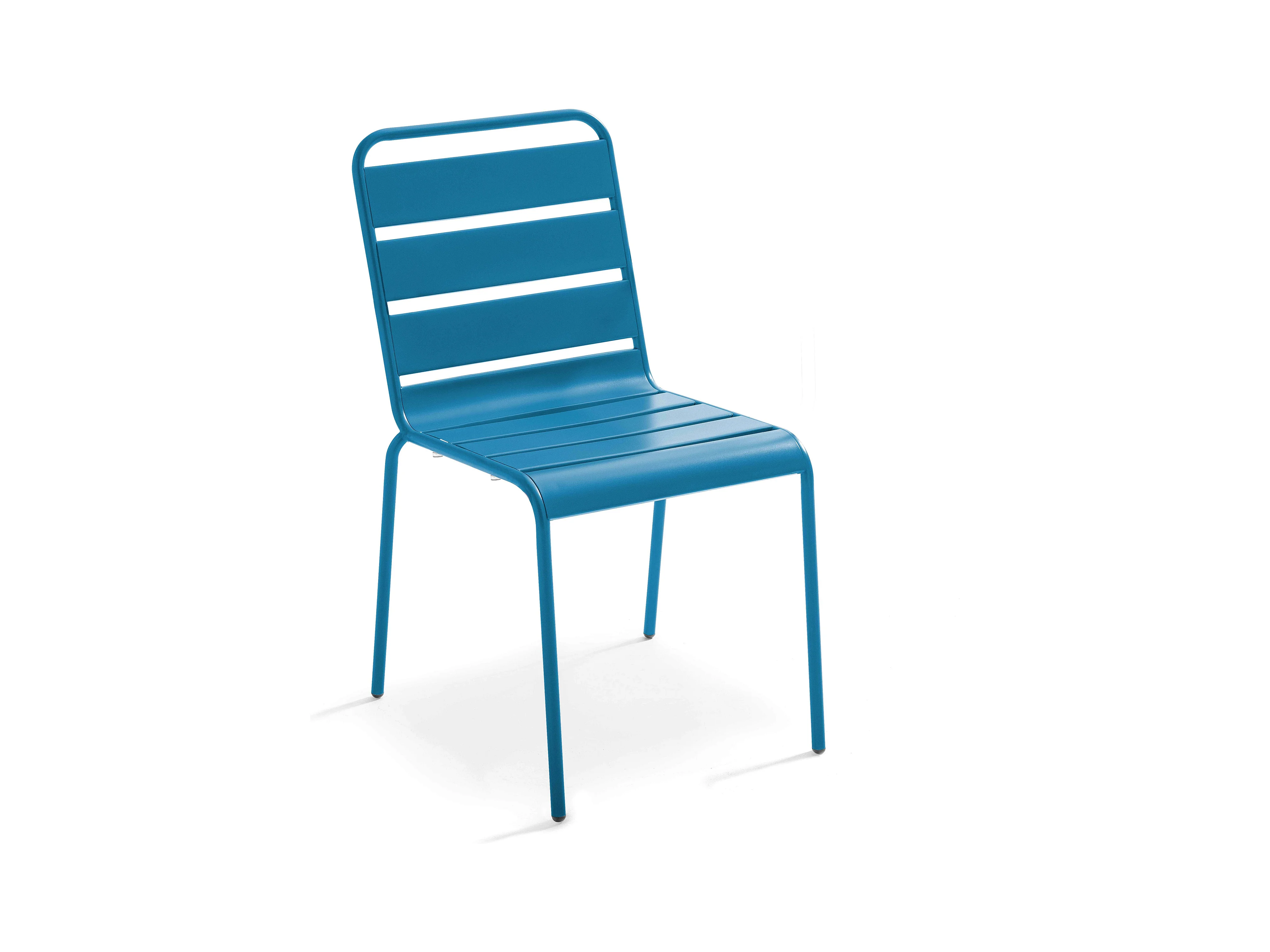 Set tuintafel en 2 blauwe stalen stoelen Pacific