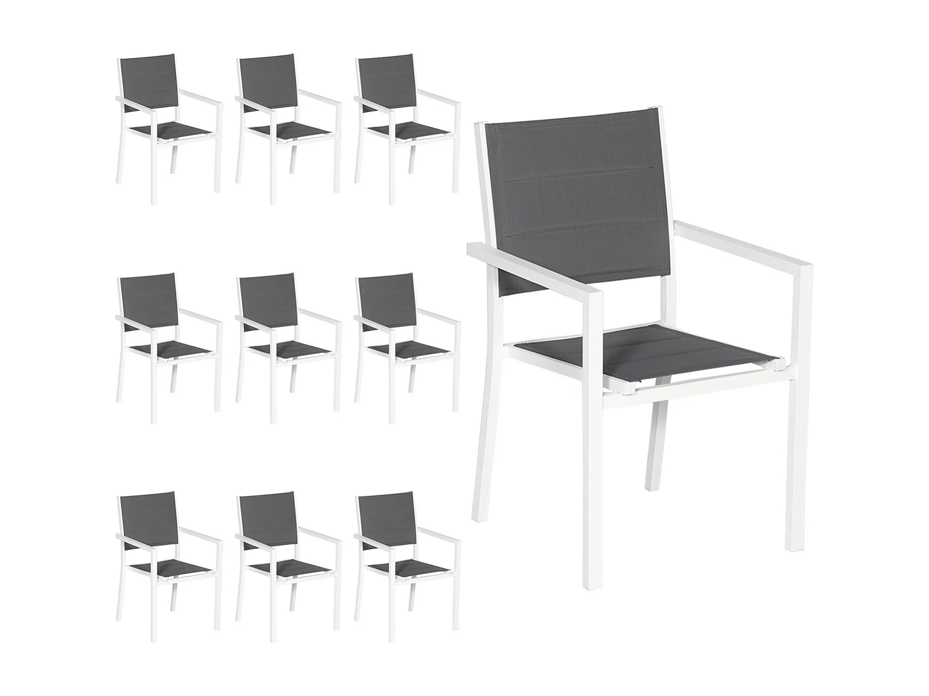 Set van 10 wit aluminium beklede stoelen - grijs textilene