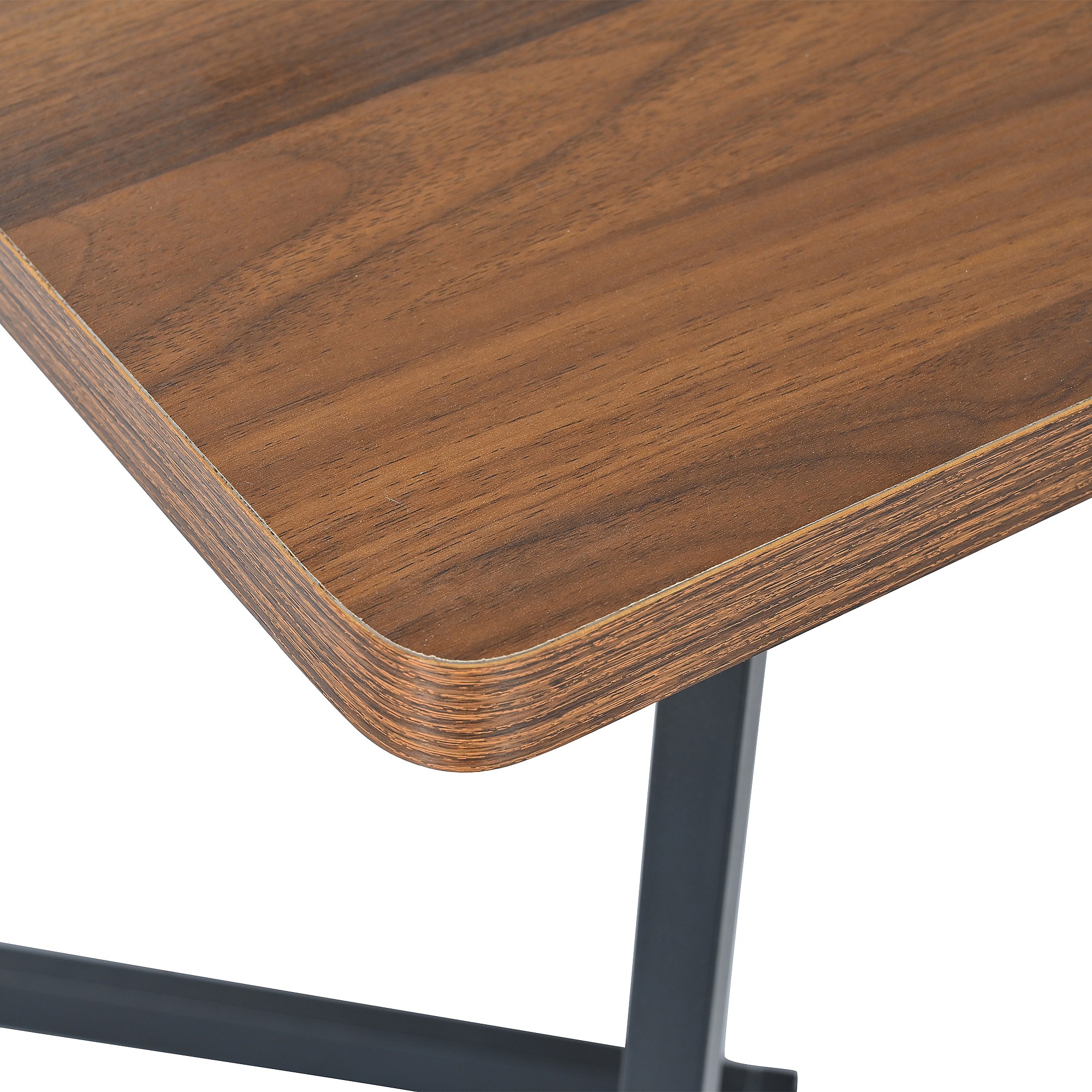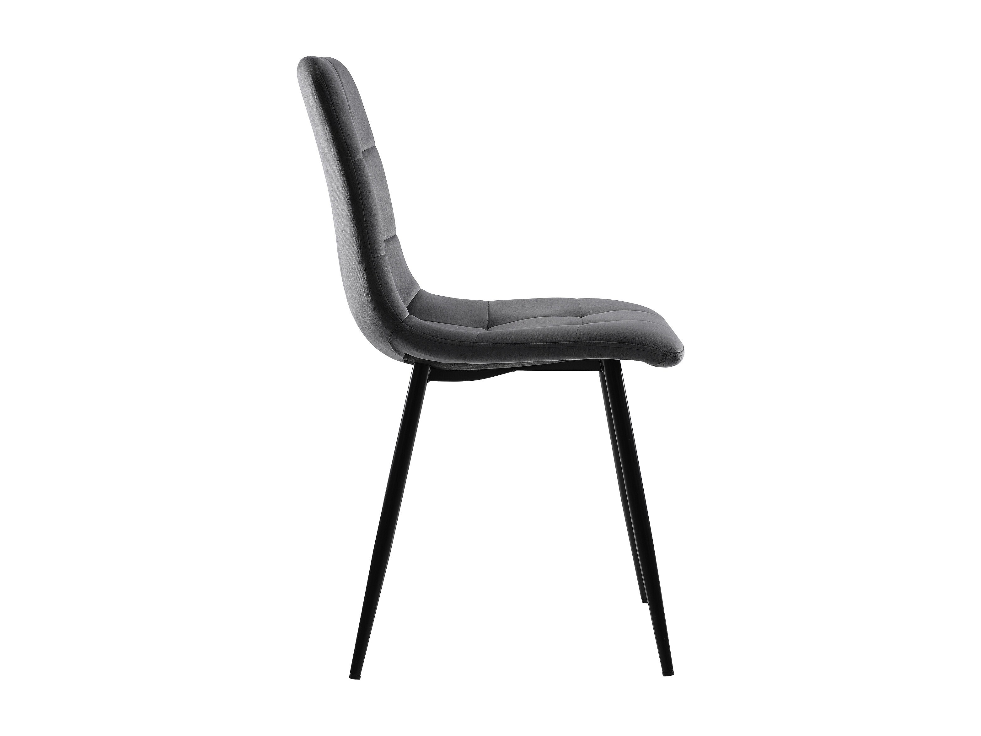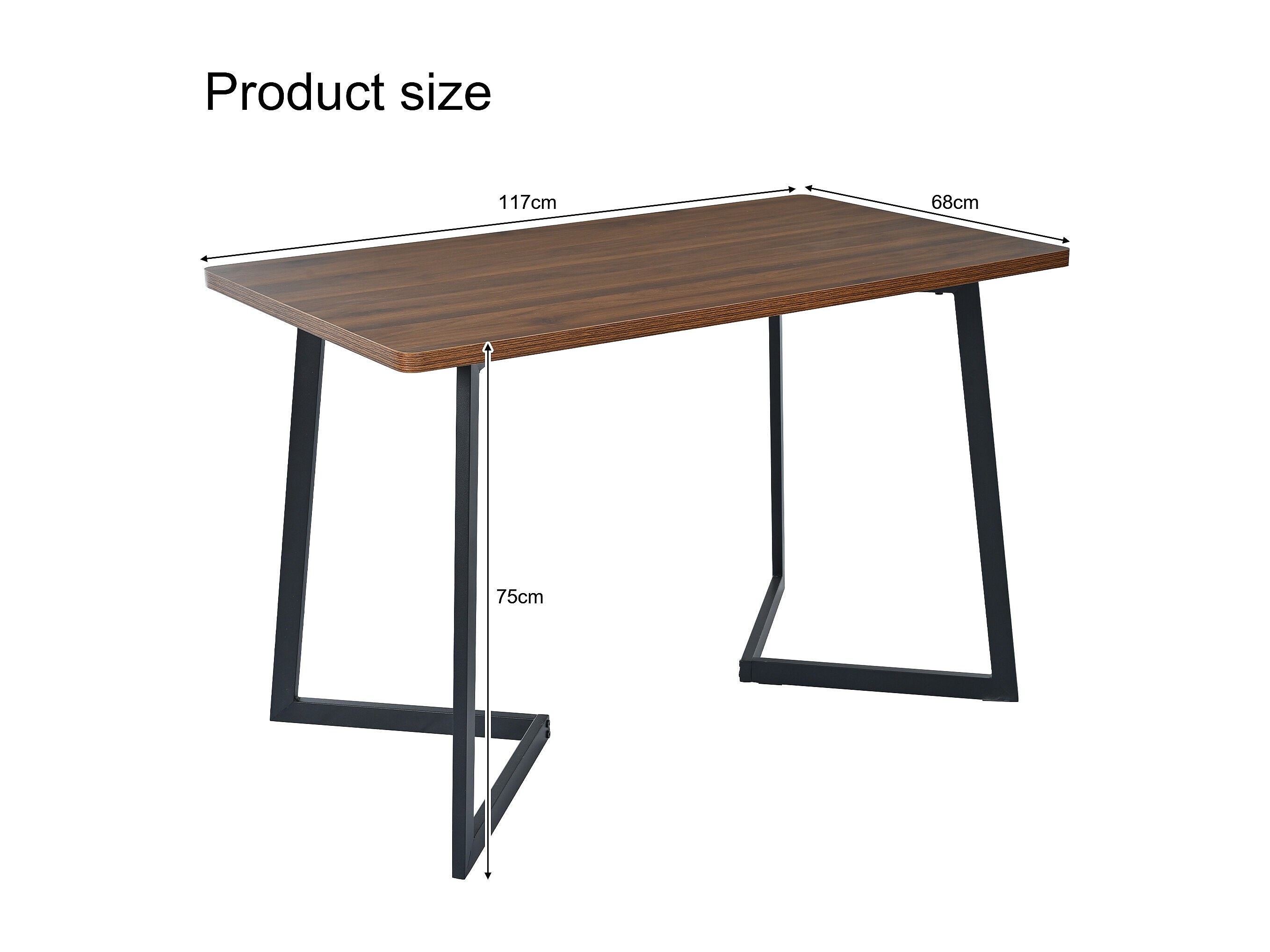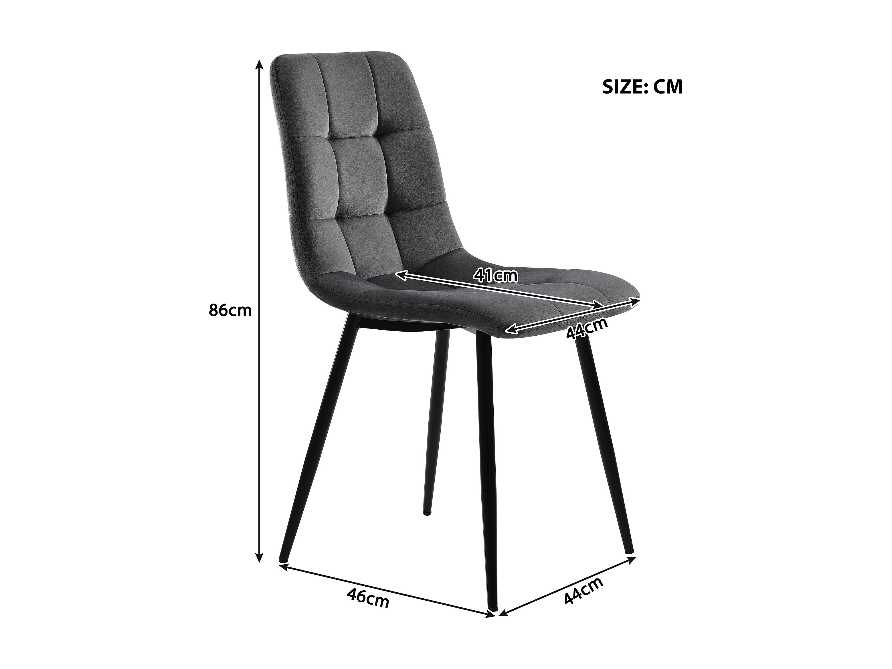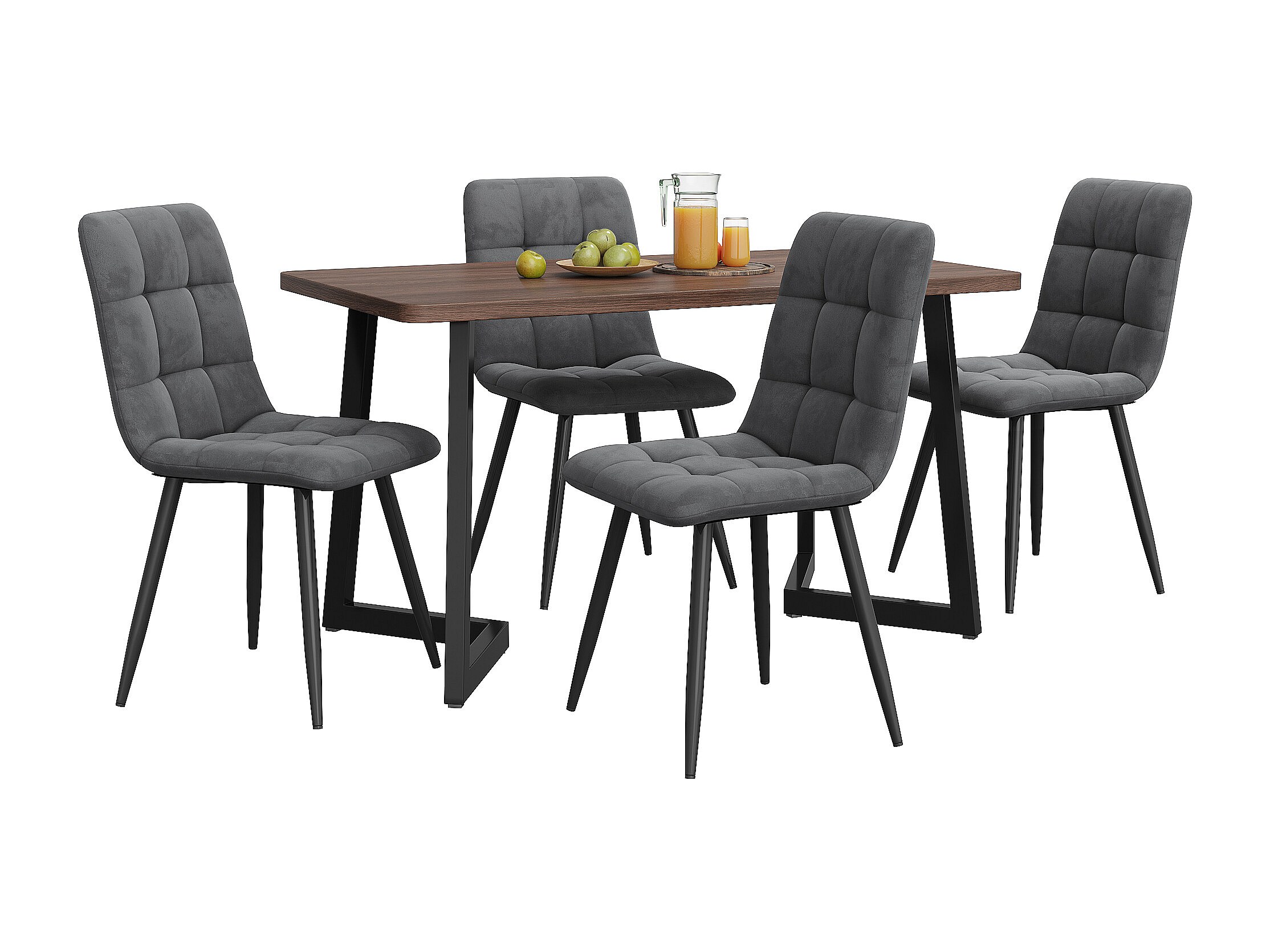 Set van 117x68 cm tafel en 4 donkergrijze fluwelen stoelen - zwarte metalen tafelpoten - walnootkleurig MDF-blad