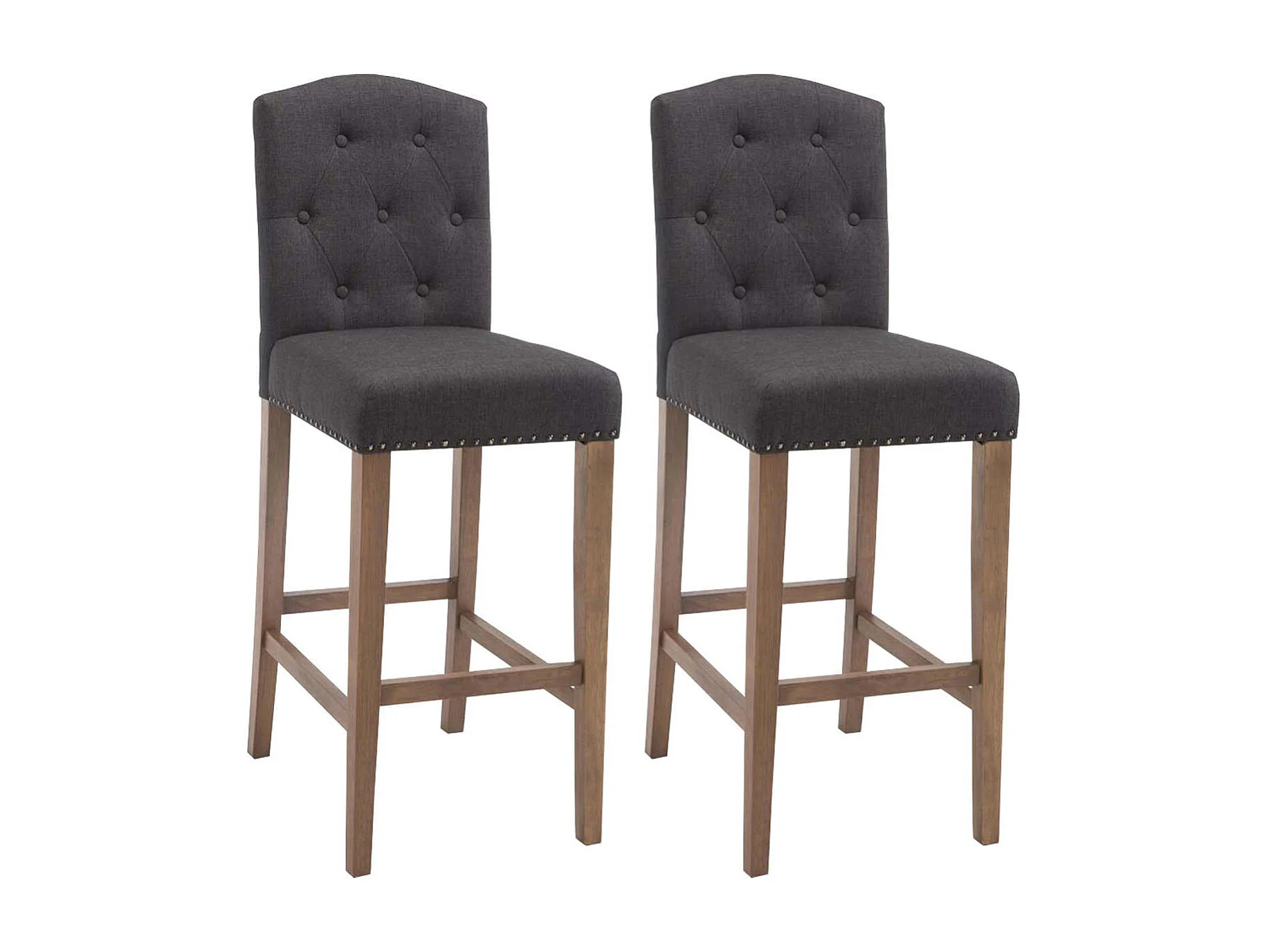 Set van 2 Barkruk - Stof & Hout - donkergrijs - Louise