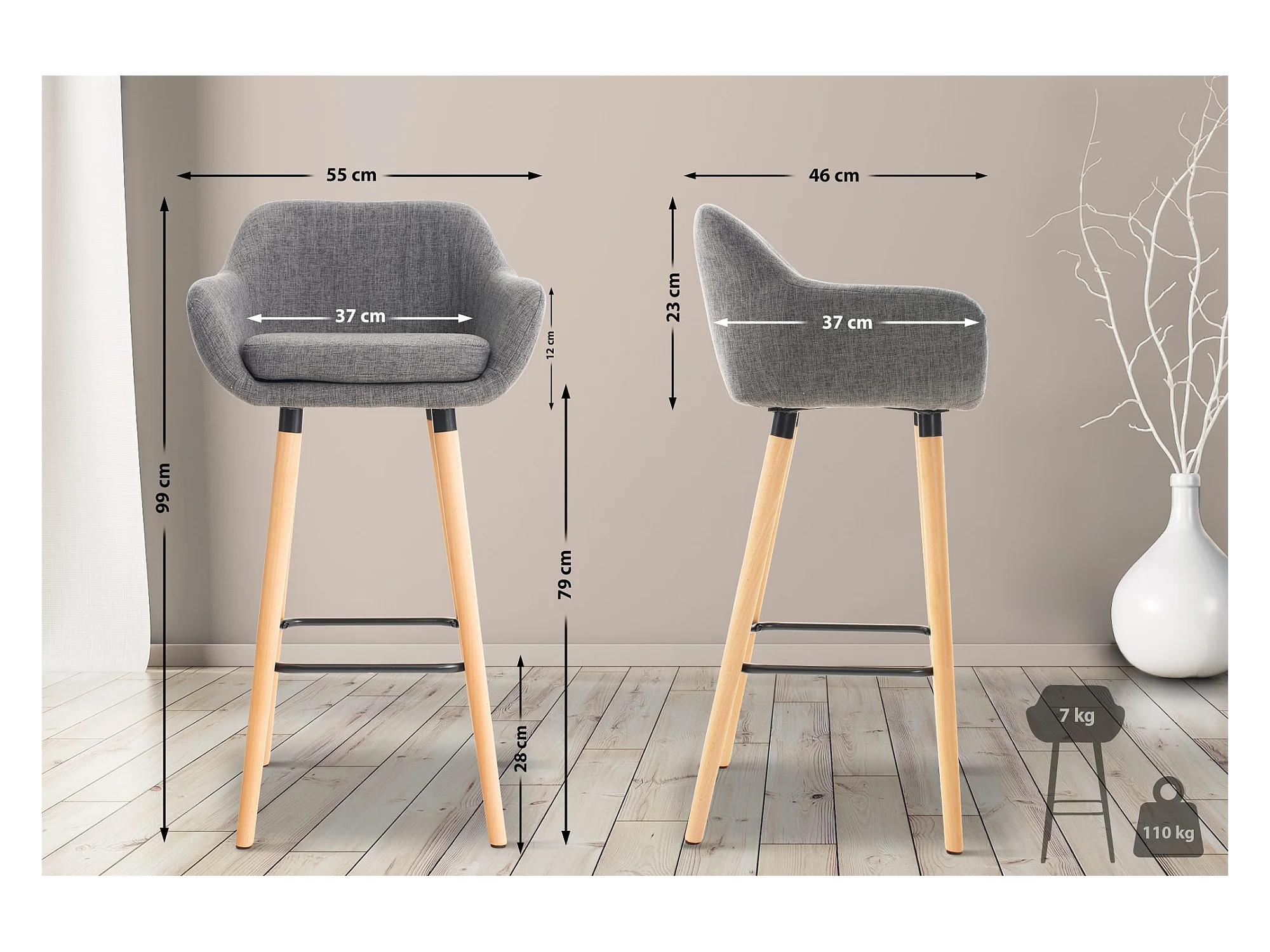Set van 2 Barkruk - Stof & natura - licht grijs - Lincoln