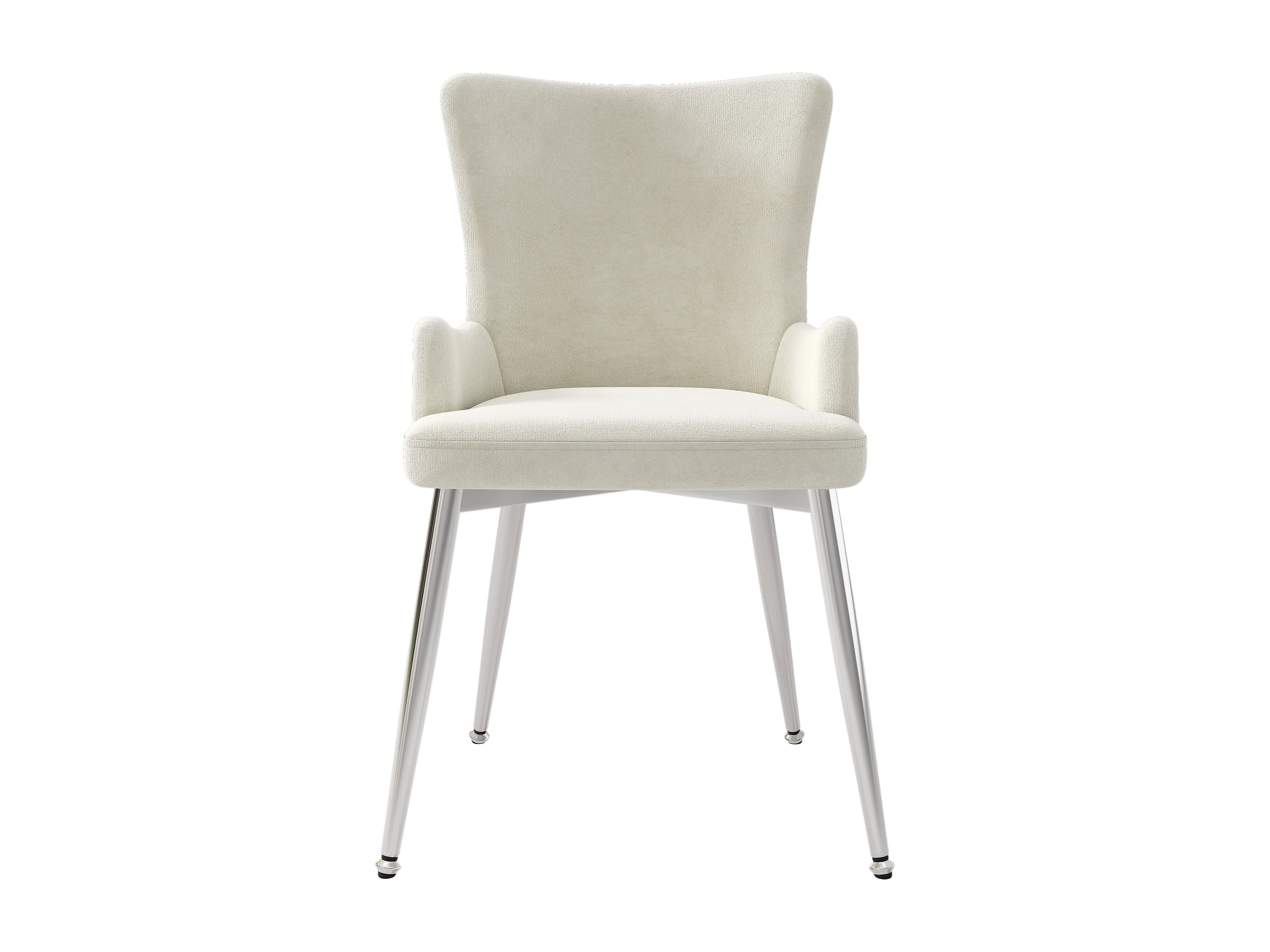 Set van 2 fluwelen eetkamerstoelen met rugleuning - zilveren metalen poten - beige