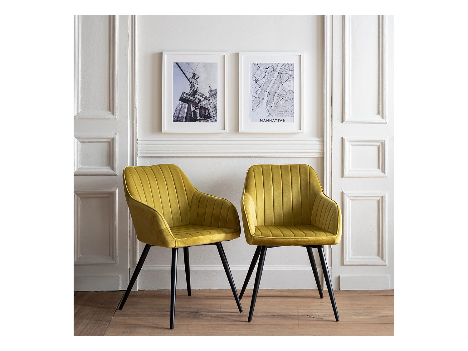 Set van 2 BERTILLE mosterd fluwelen stoelen