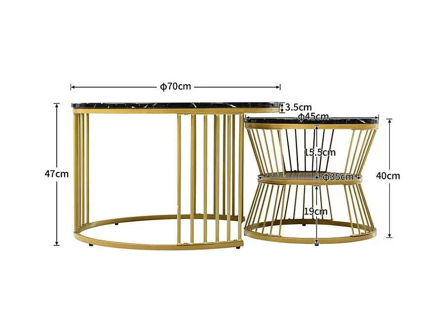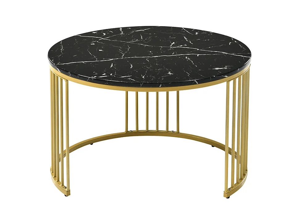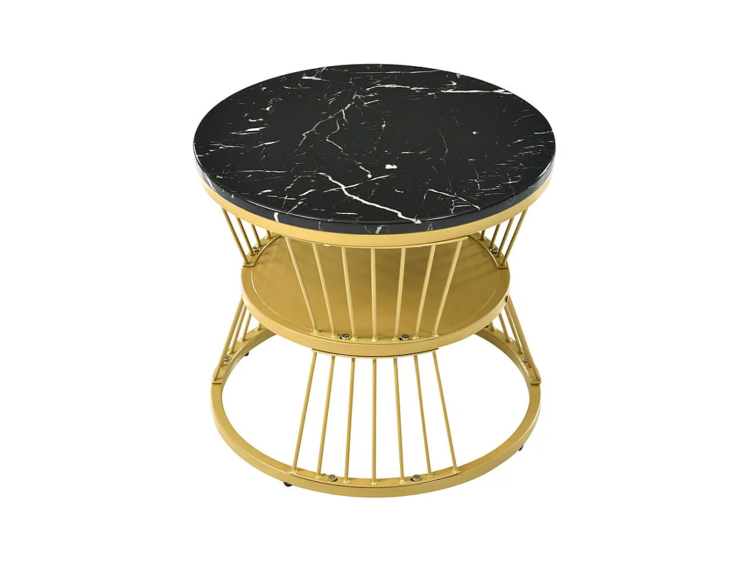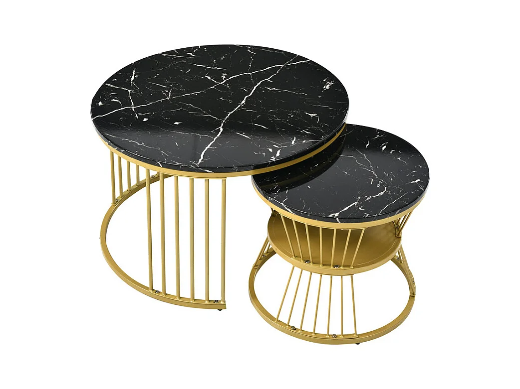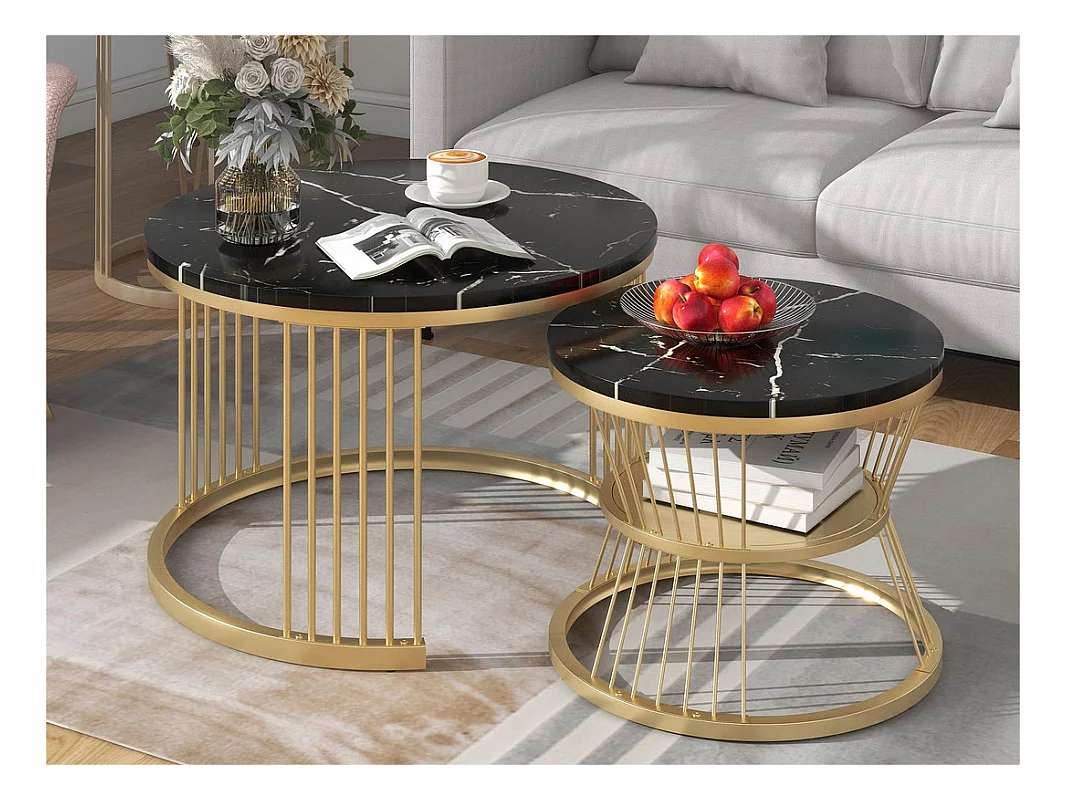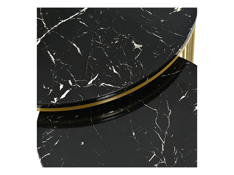 Set van 2 bijzettafels - fineer met marmerpatroon en metalen poten - Zwart en goud
