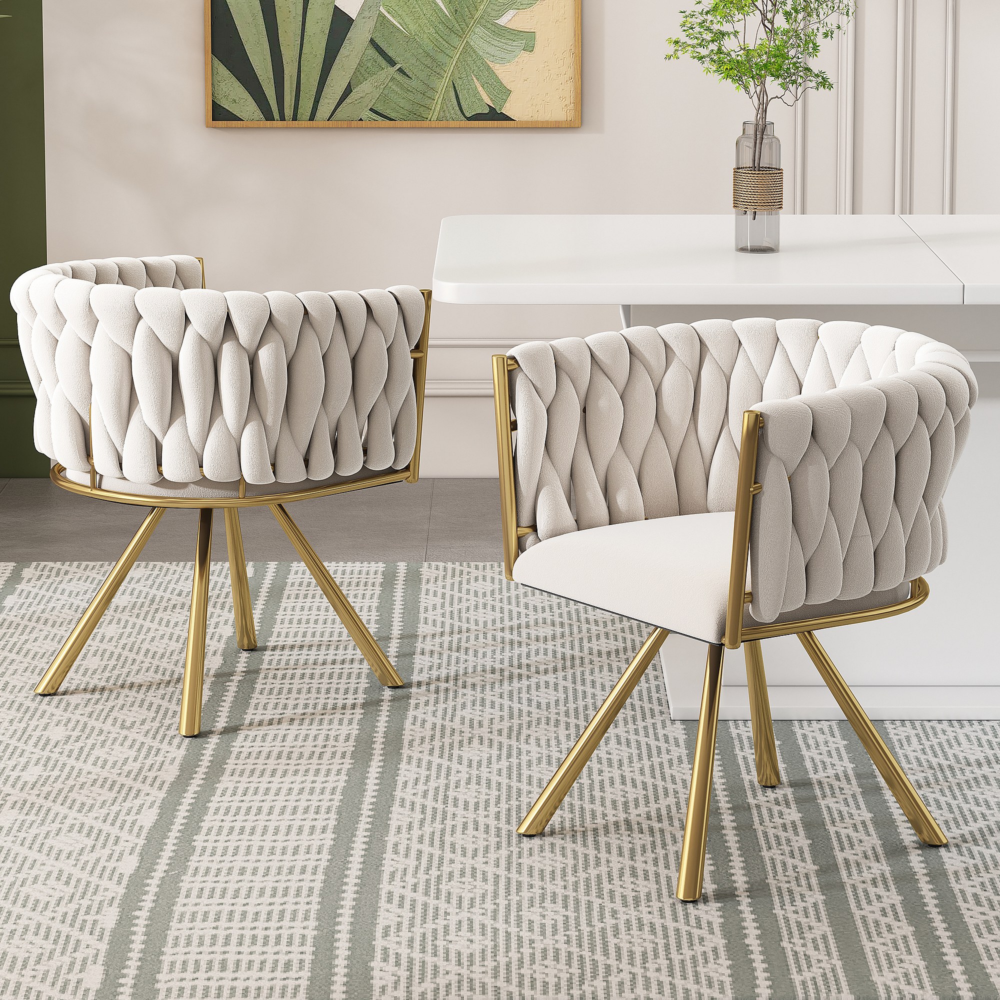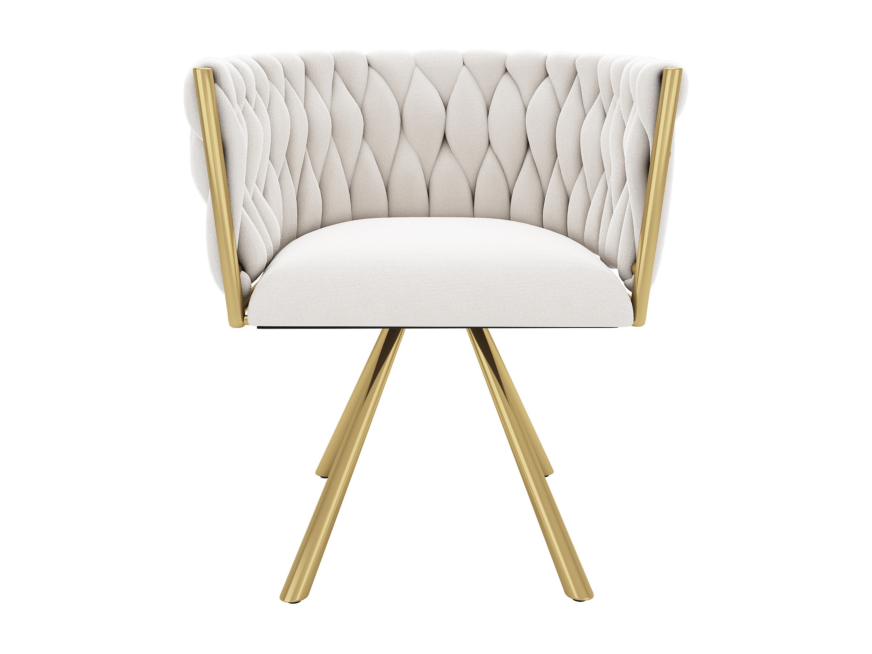 Set van 2 draaibare eetkamerstoelen met armleuningen en rugleuning - gouden metalen poten - beige fluweel