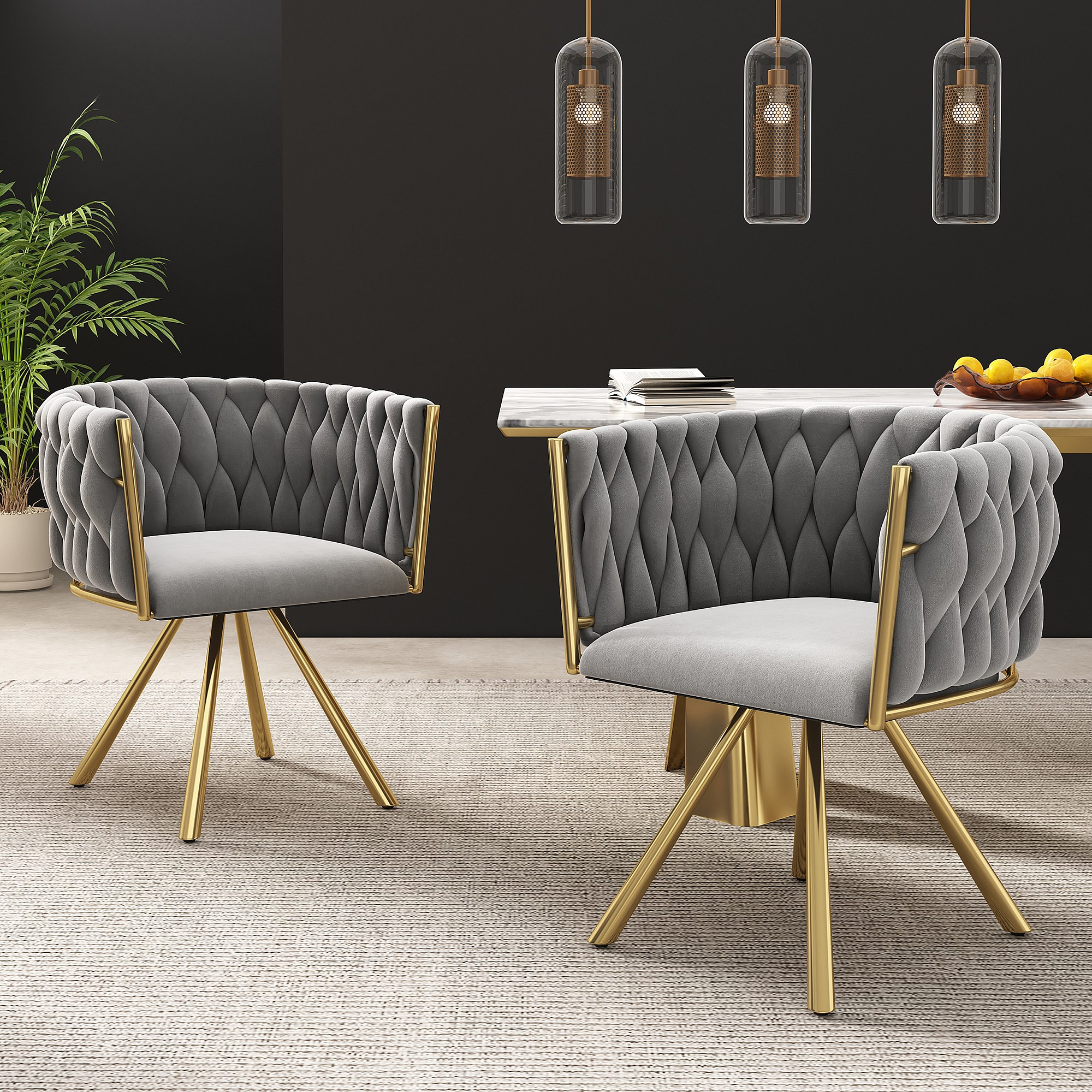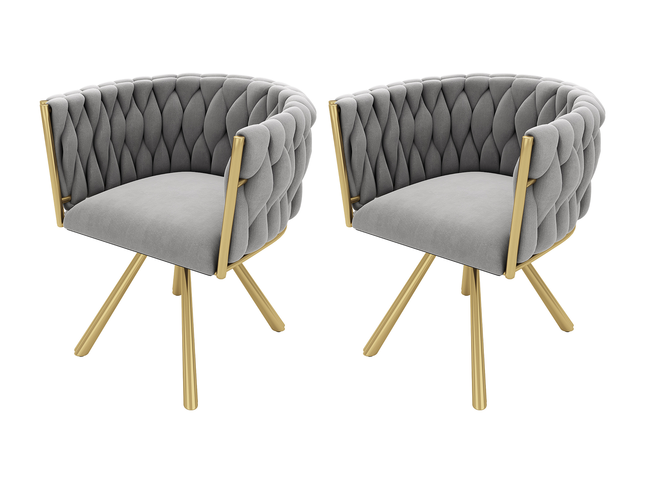 Set van 2 draaibare eetkamerstoelen met armleuningen en rugleuning - gouden metalen poten - fluweelgrijs