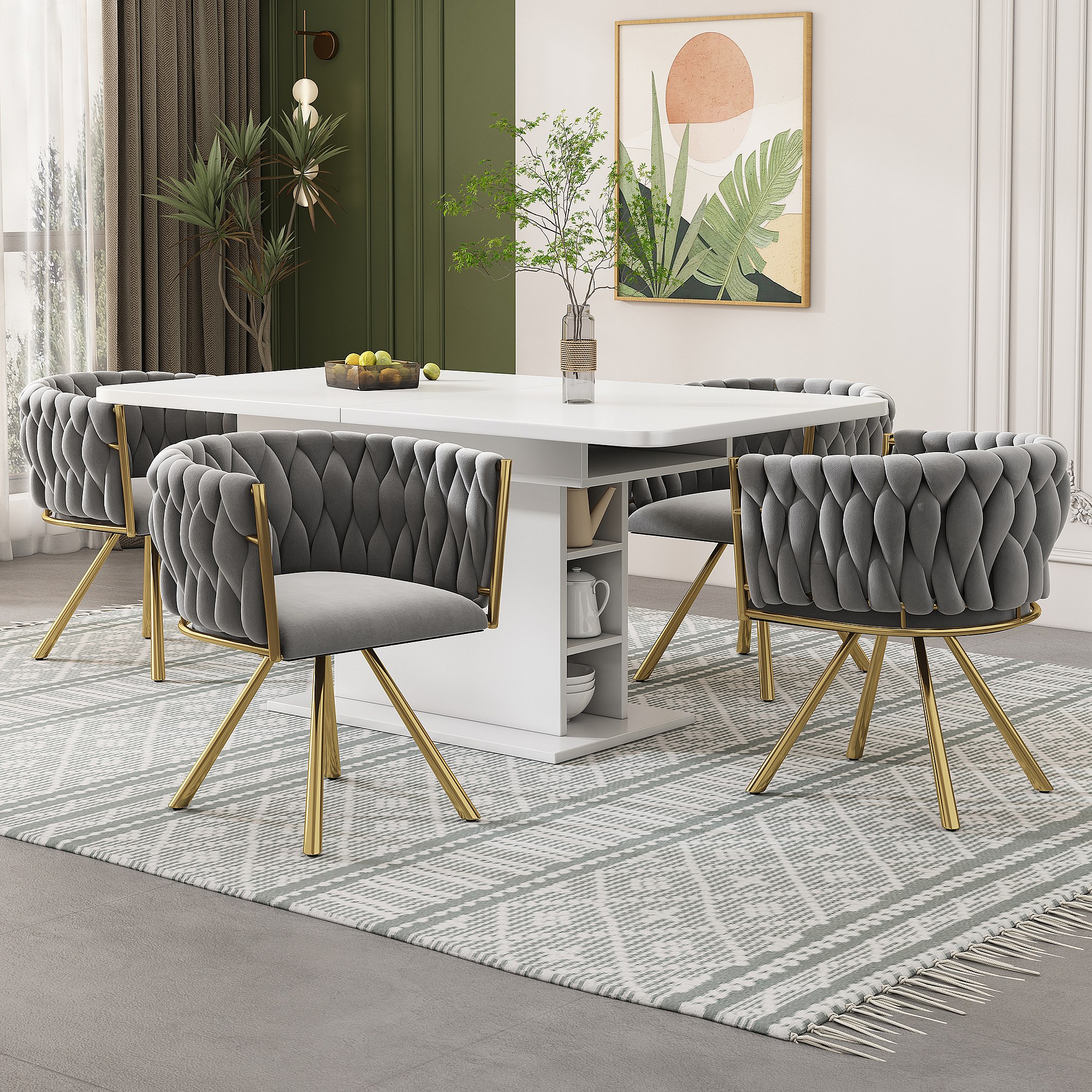 • Luxe fluwelen bekleding: Onze eetkamerstoelen hebben een elegante fluwelen bekleding, die er niet alleen stijlvol uitziet, maar ook comfortabel zit. Het fluwelen materiaal voegt een vleugje luxe en elegantie toe aan uw eetruimte.
