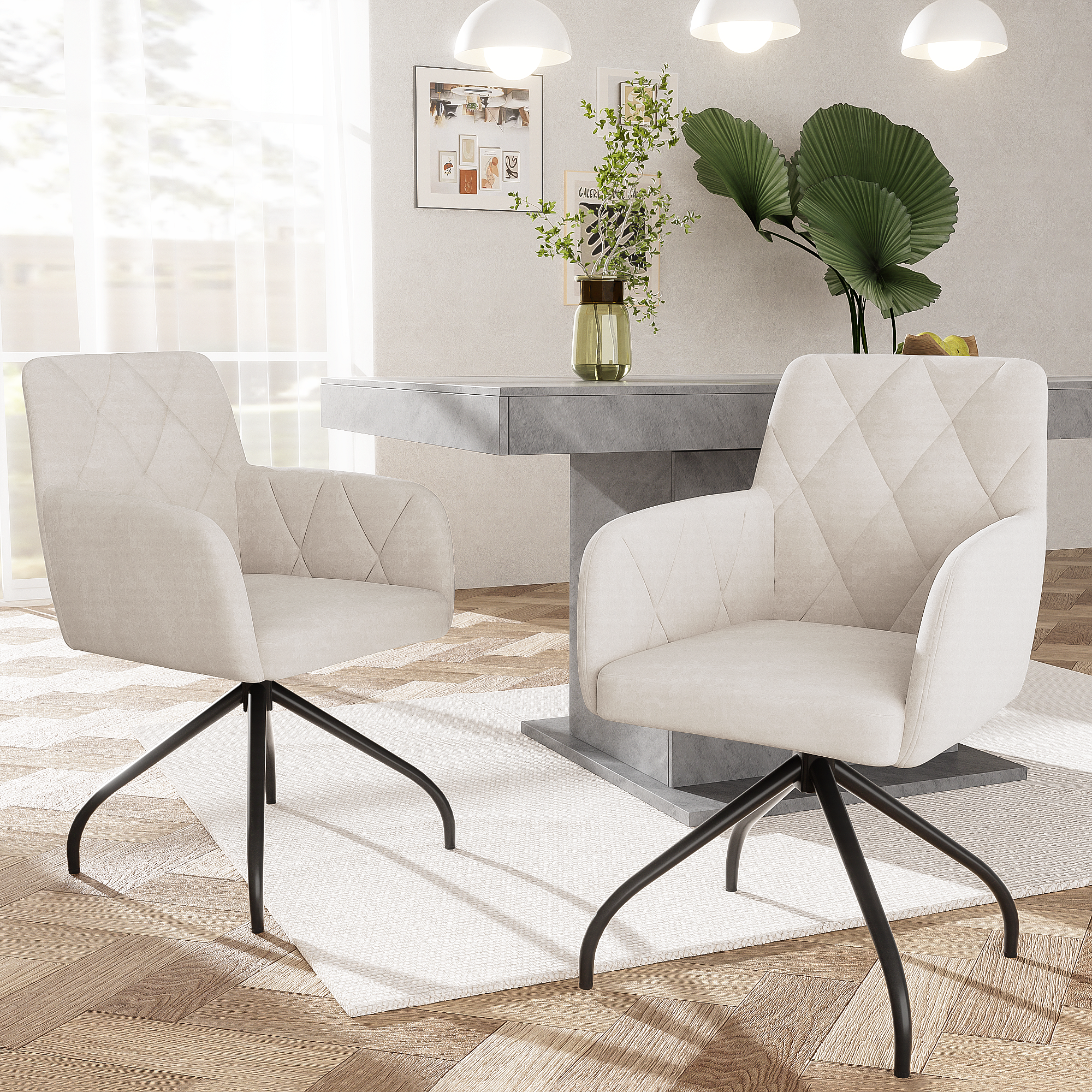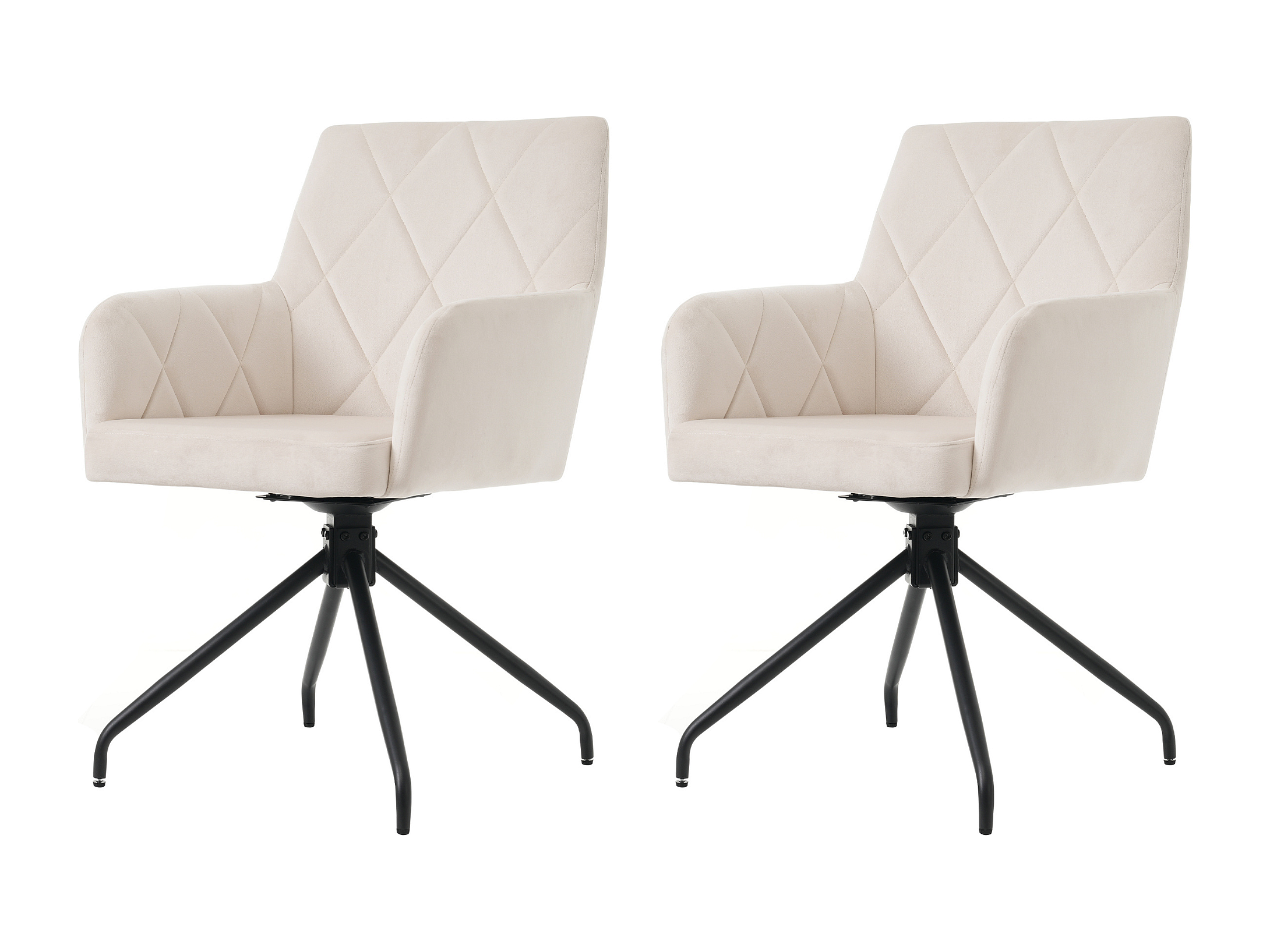 Set van 2 draaibare eetkamerstoelen met armleuningen en rugleuning - metalen poten - beige fluweel