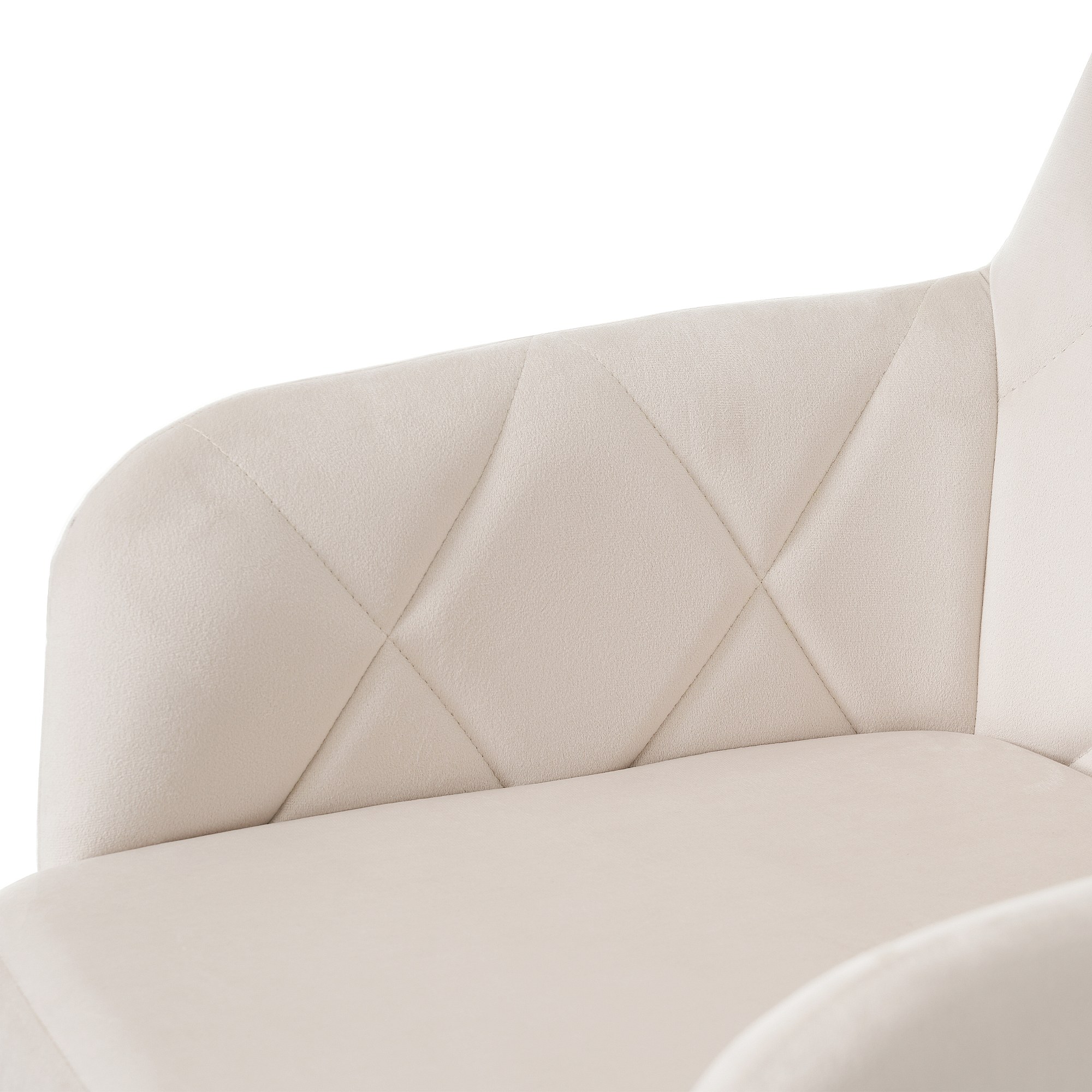 3. Hoogwaardige fluwelen stof: Het oppervlak van de stoel is gemaakt van hoogwaardig fluweel, dat zacht en comfortabel aanvoelt. De ruitvormige rugleuning is zowel modern als elegant, wat de algehele kwaliteit en het visuele effect van de stoel versterkt en geschikt is voor diverse decoratieve stijlen.