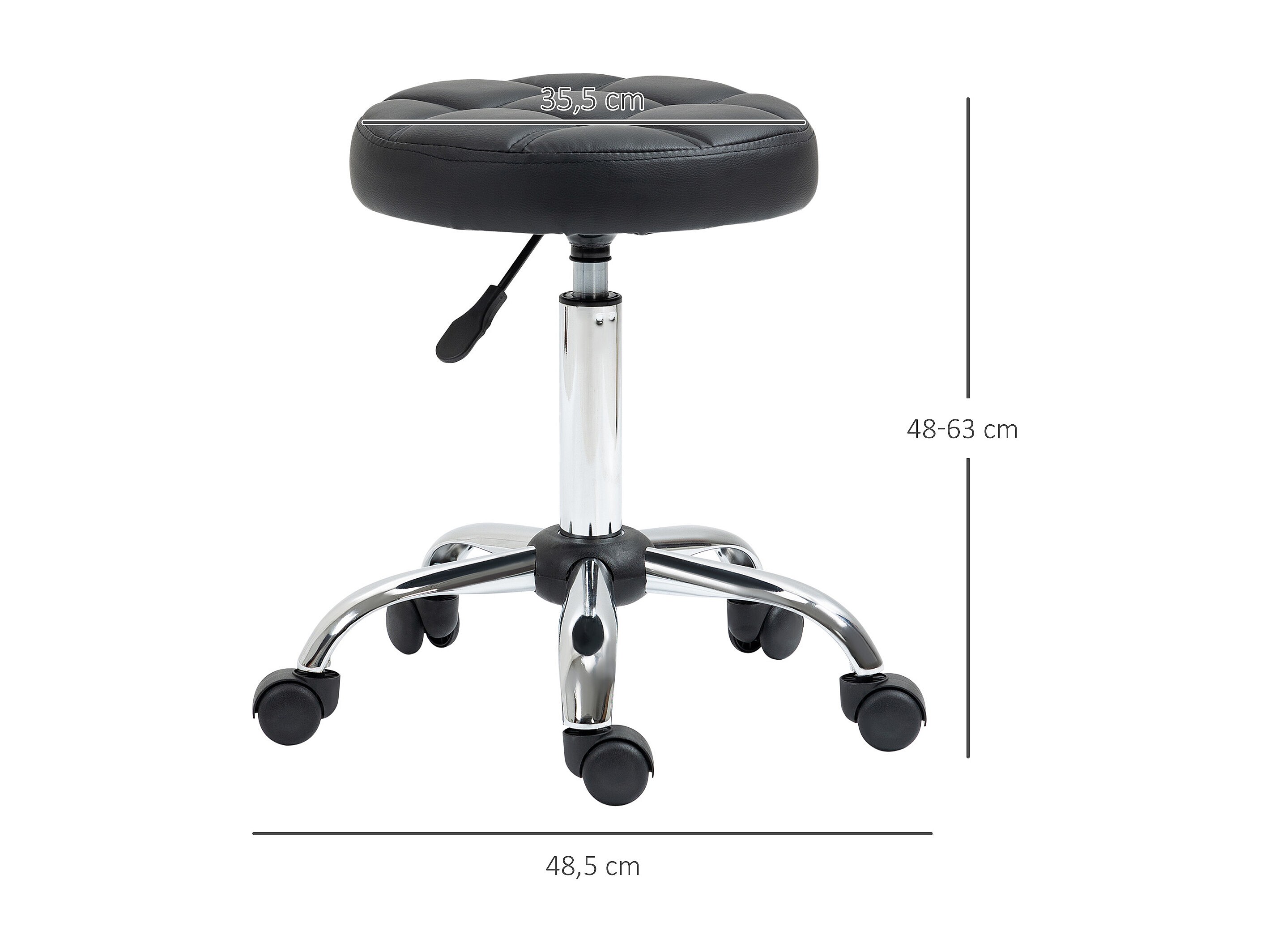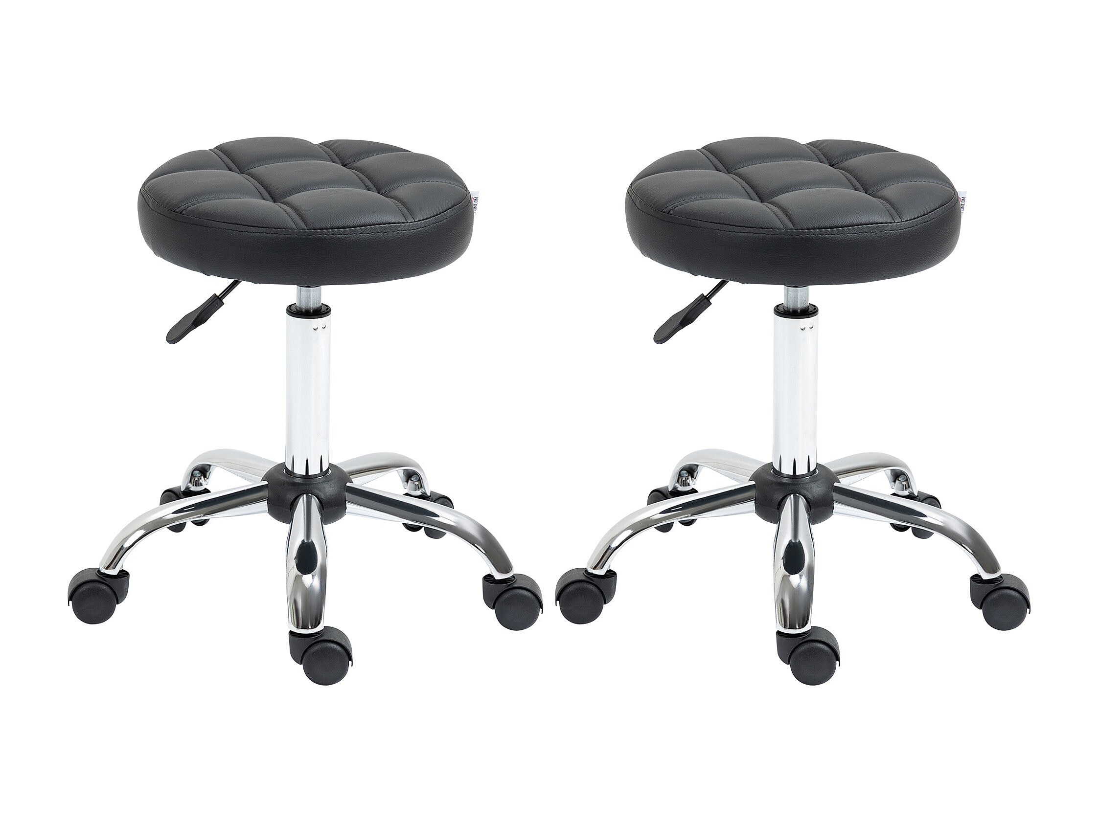 Set van 2 draaibare krukken voor salons, in hoogte verstelbaar, met wieltjes, zwarte imitatieleren bekleding, perfect voor kappers of schoonheidssalons
