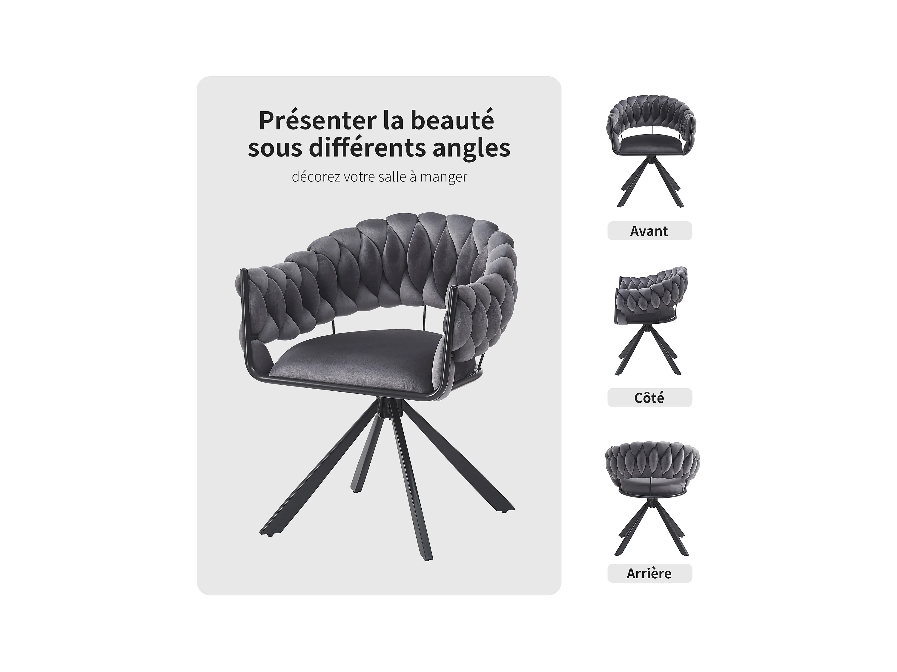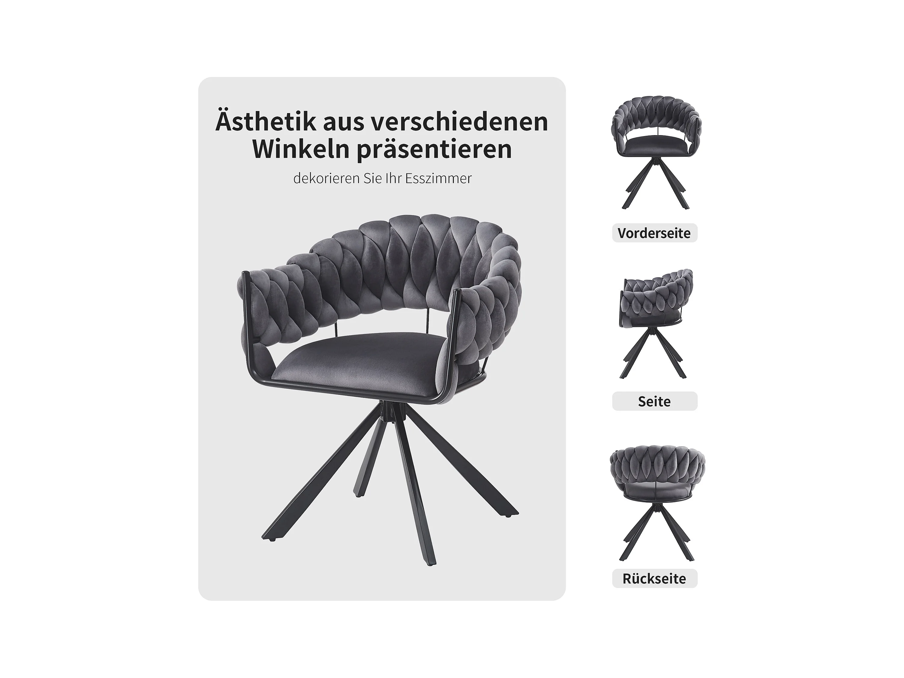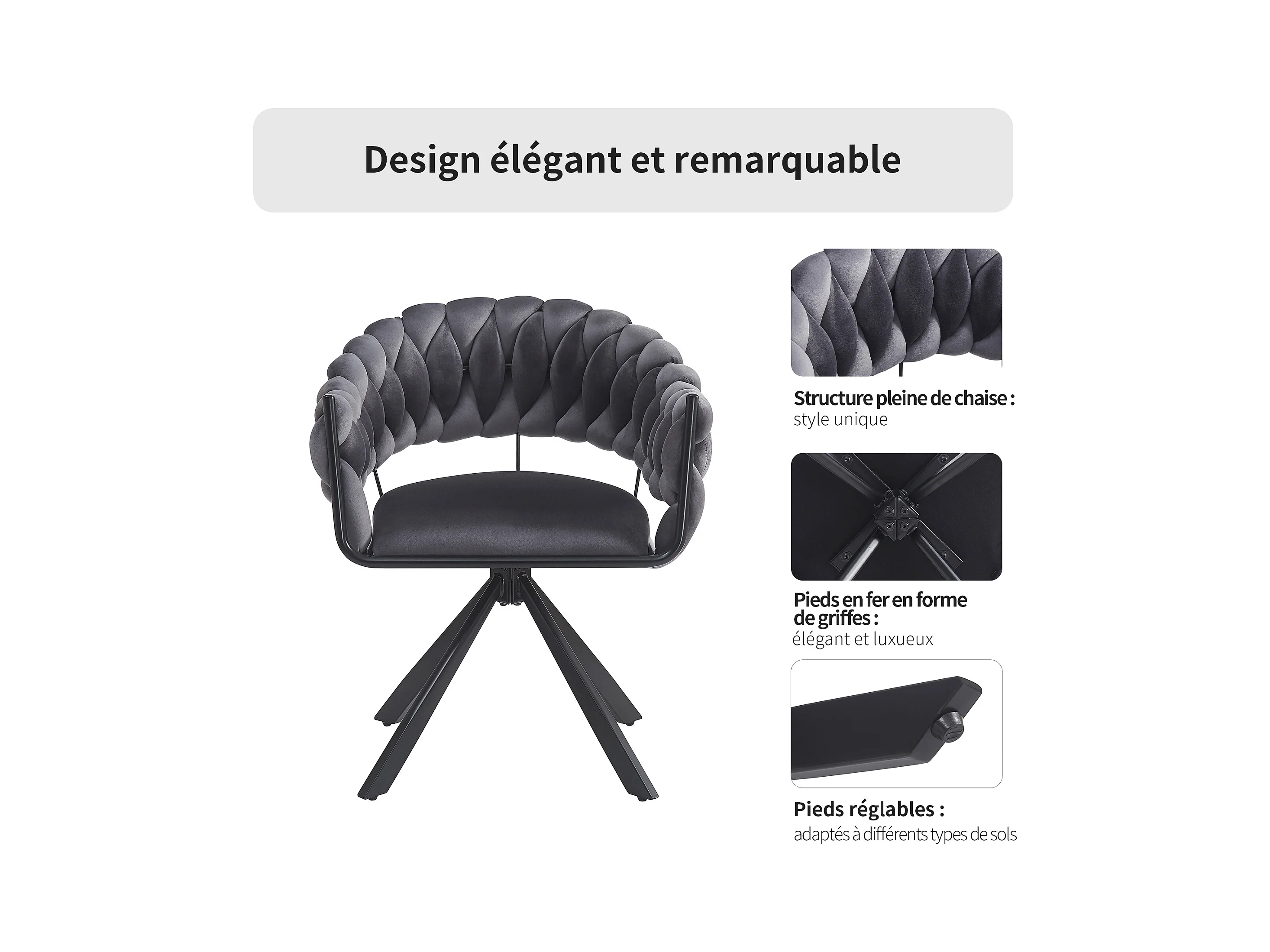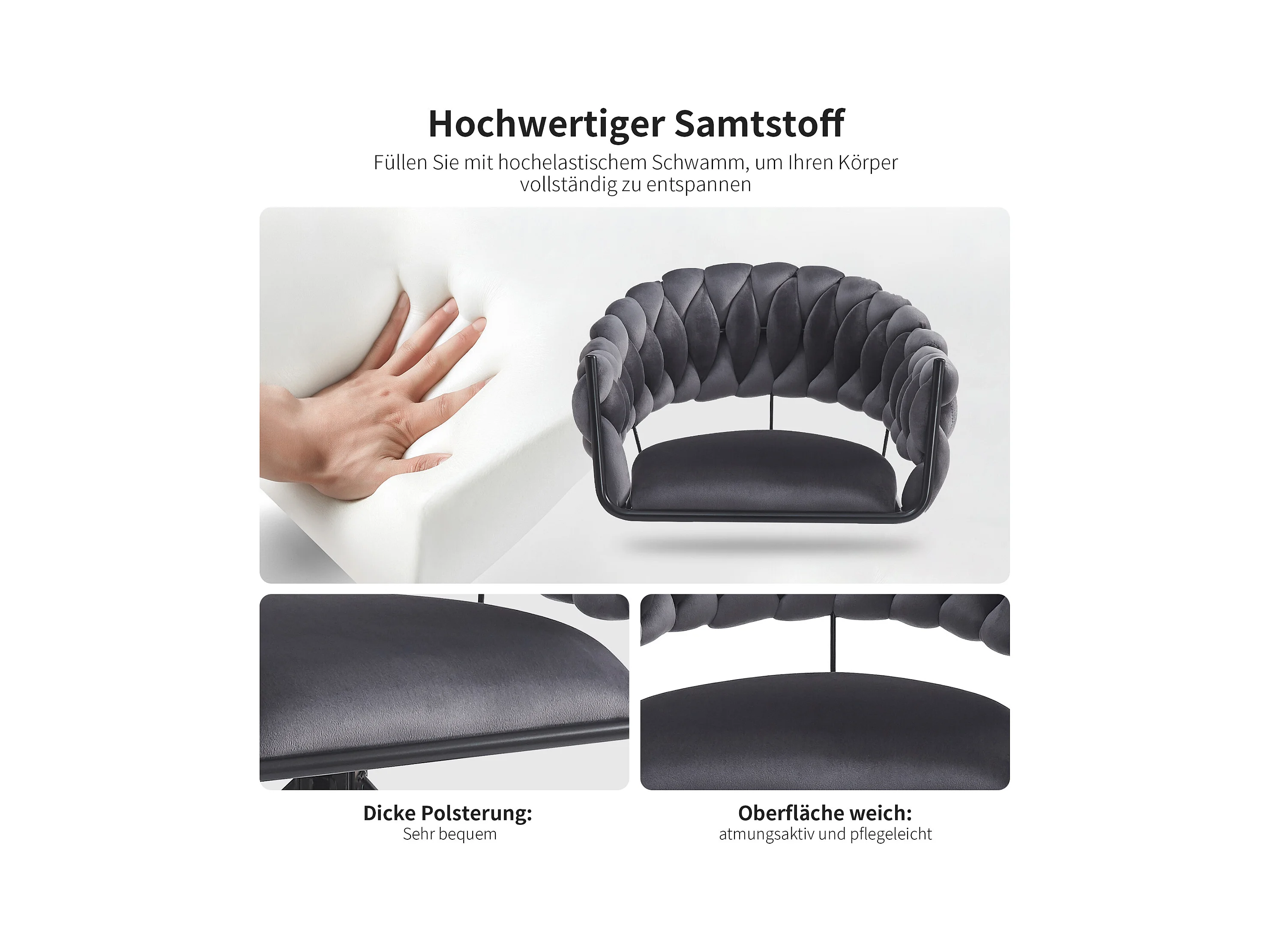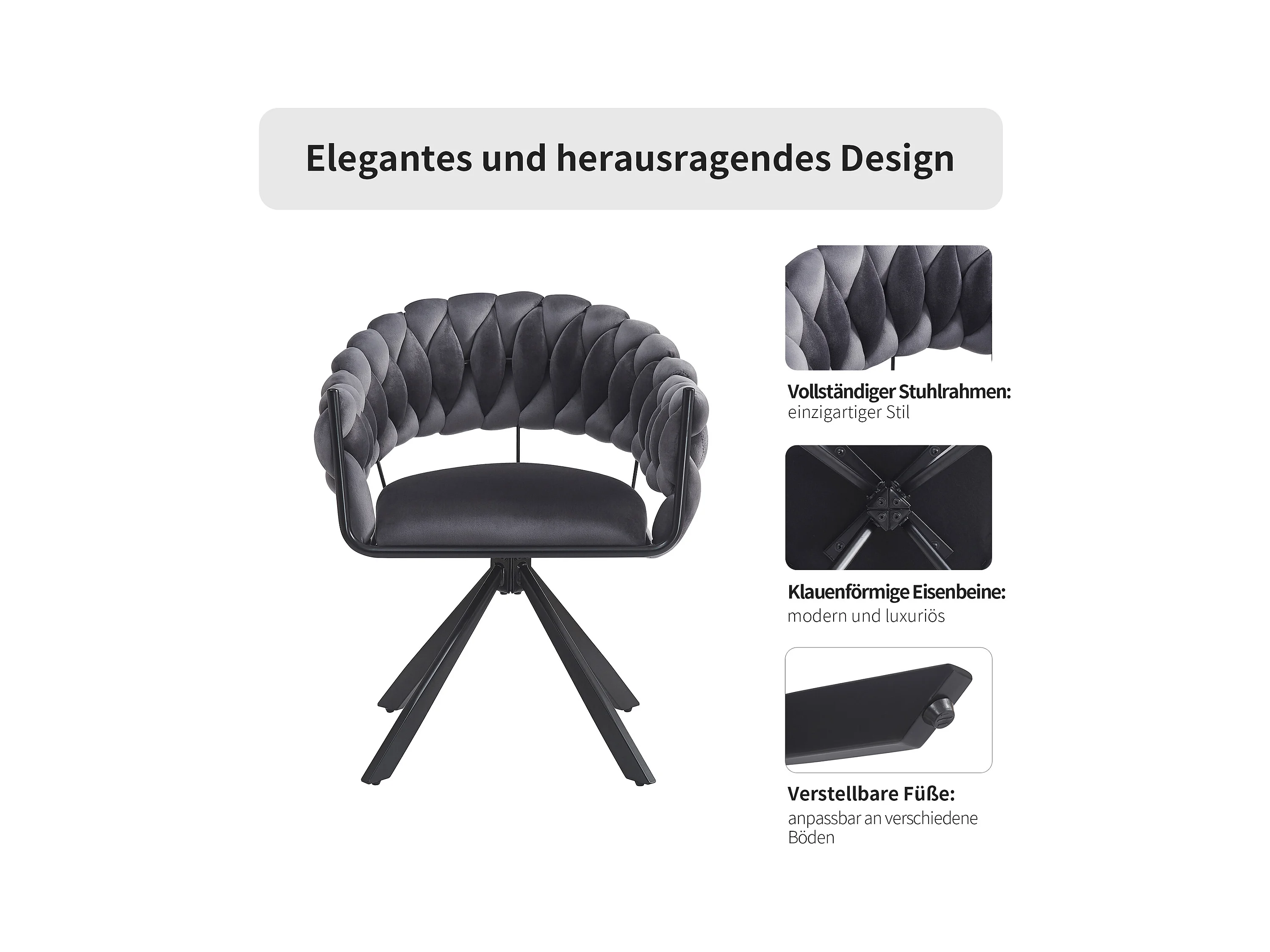 Set van 2 eetkamerstoelen - 64 x 54 x 77 cm - kaptafelstoel - verstelbare klauwpoten - fluweel - grijs