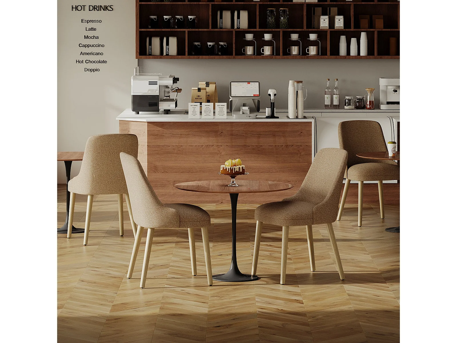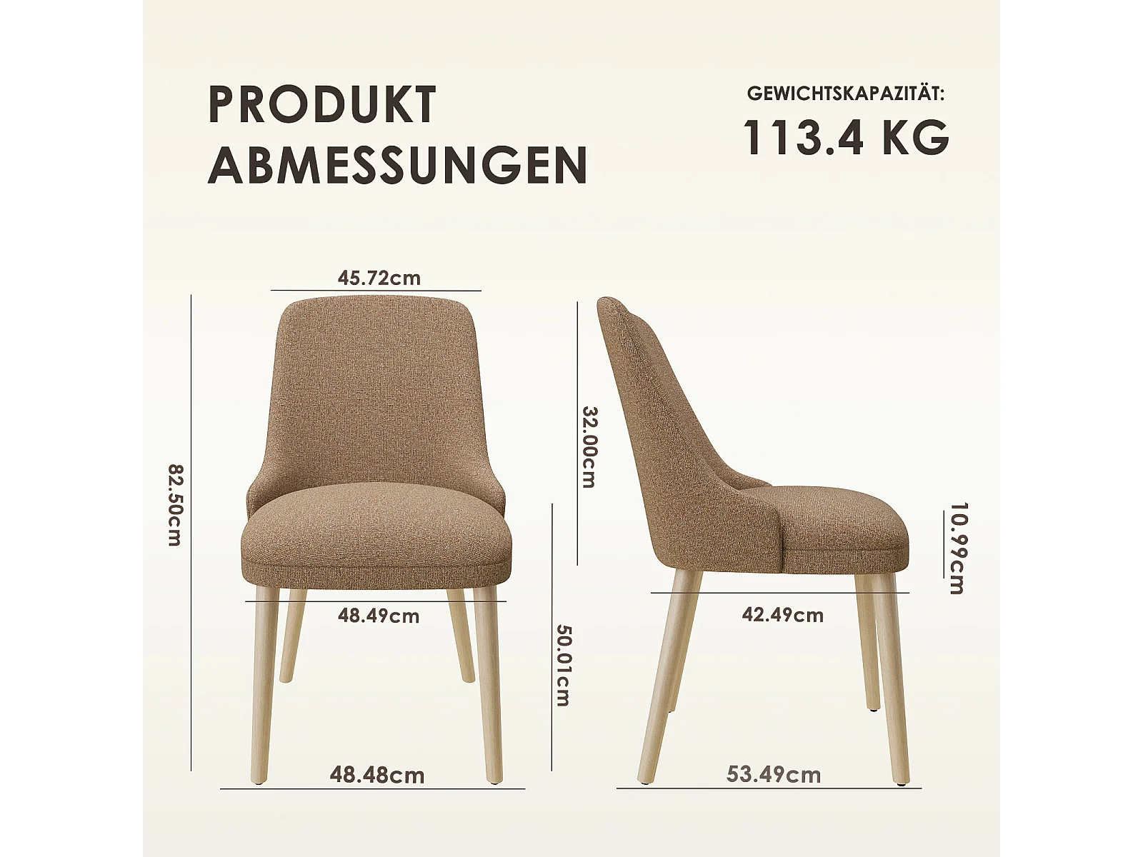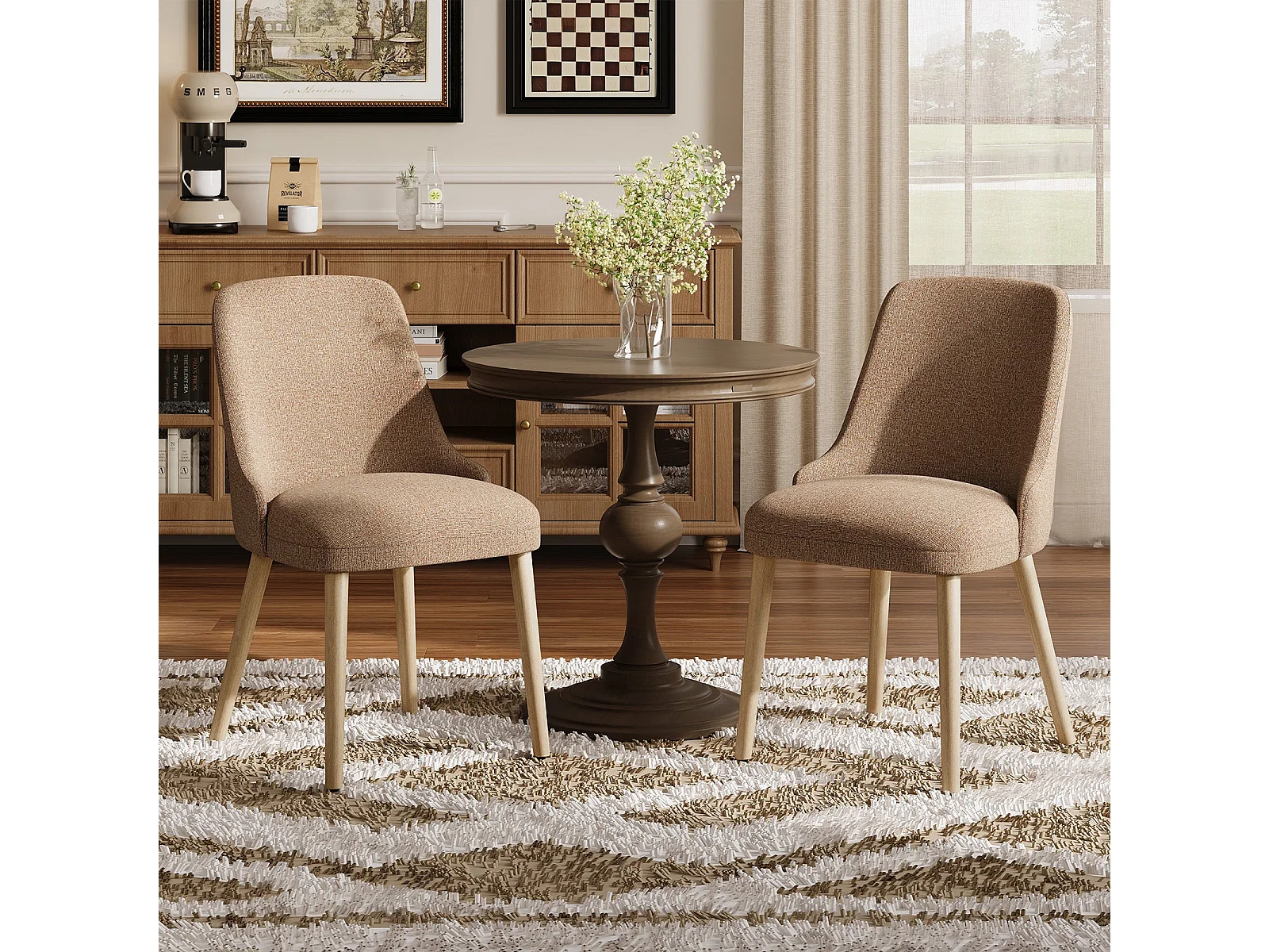 Set van 2 eetkamerstoelen met hoog, gewatteerd rugleuning en houten poten - Camel