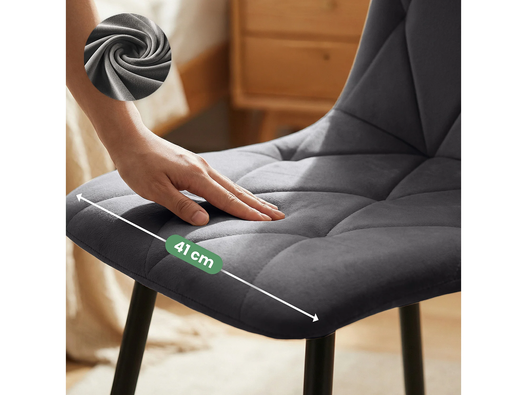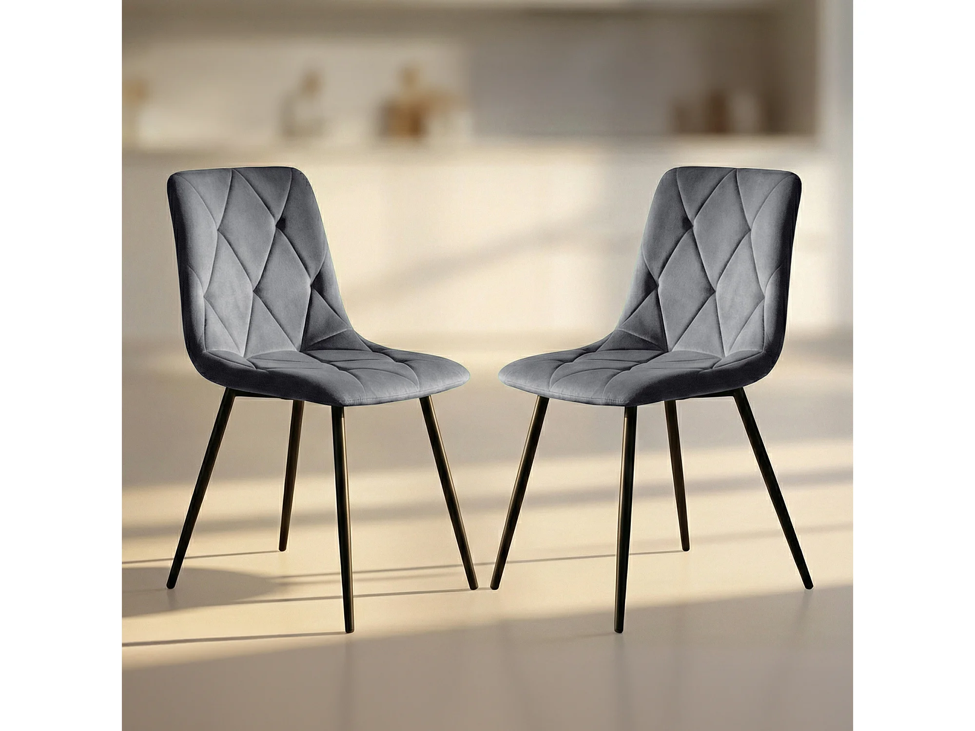 Set van 2 Eetkamerstoelen MILO / Gestoffeerde Stoelen / Fluwelen Stoelen en Metalen Poten / Antraciet met zwarte benen
