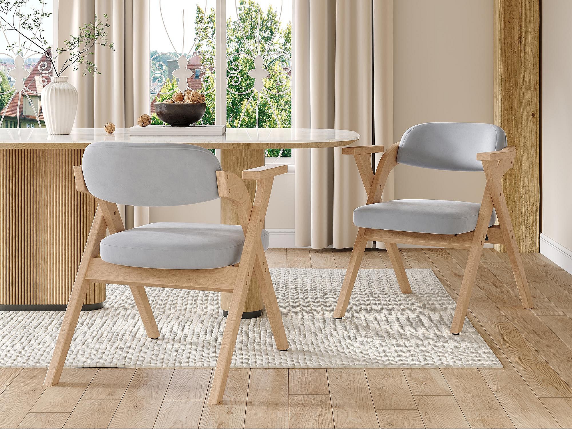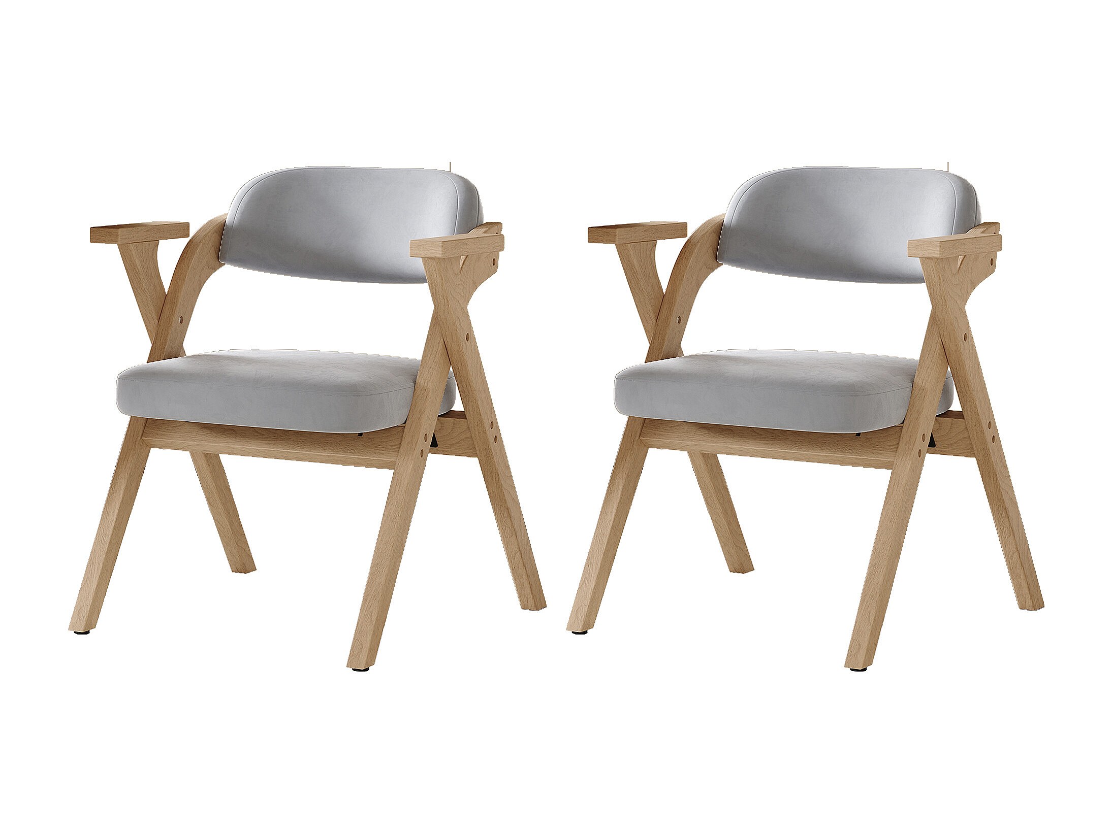 Set van 2 eetkamerstoelen - Opvouwbaar - zitting van fluweel - Structuur van massief hout - Grijs