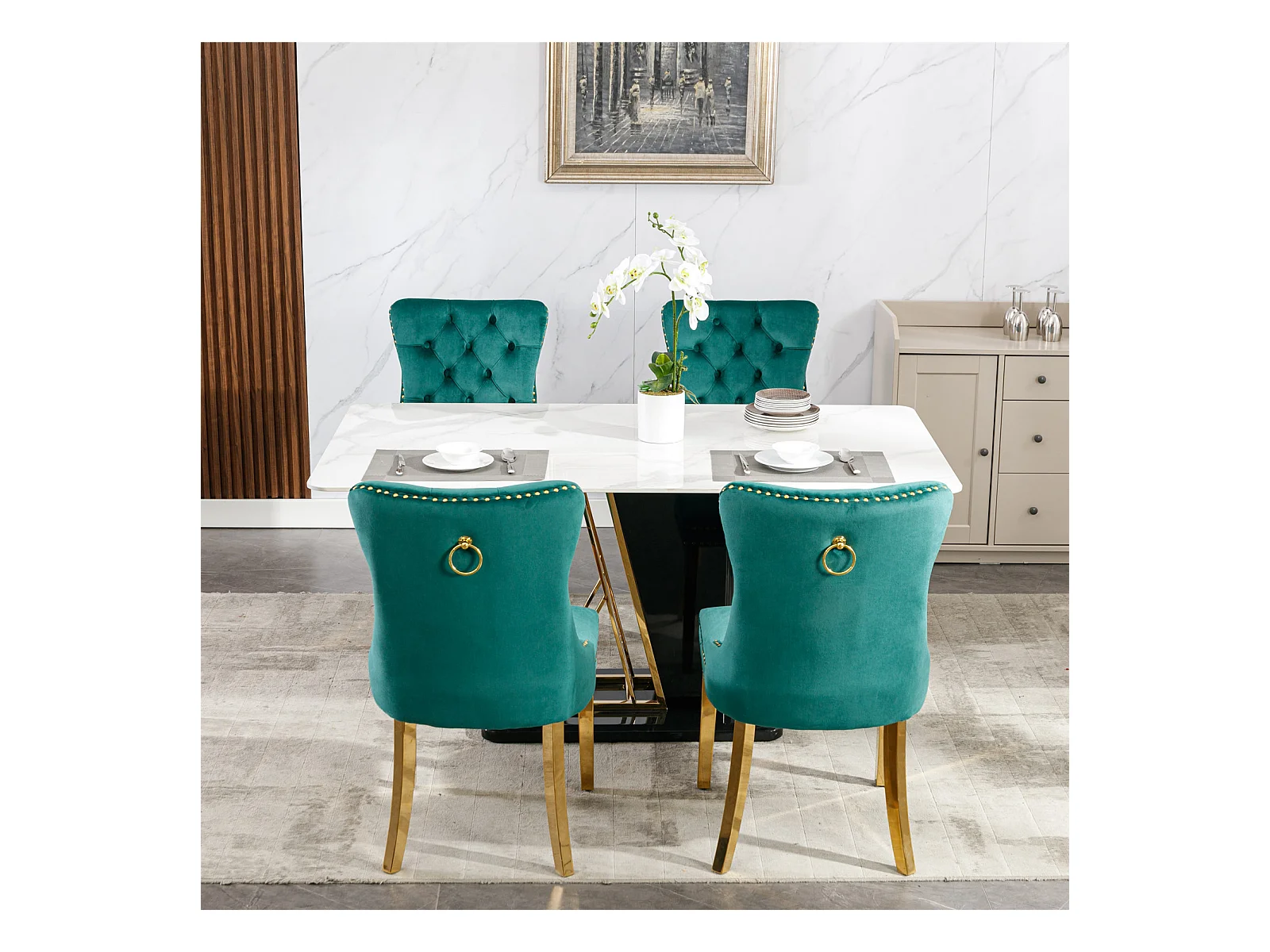 Set van 2 eetkamerstoelen - Stoelen met gewatteerde rugleuningen en gouden roestvrijstalen poten - met studs - groen fluweel