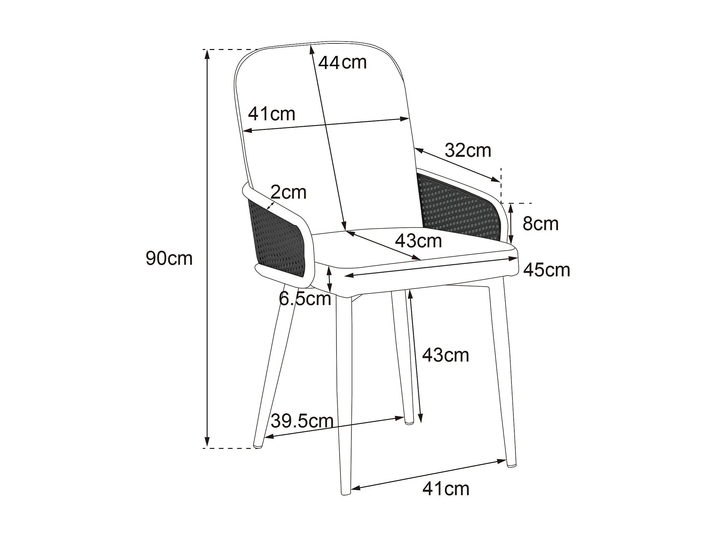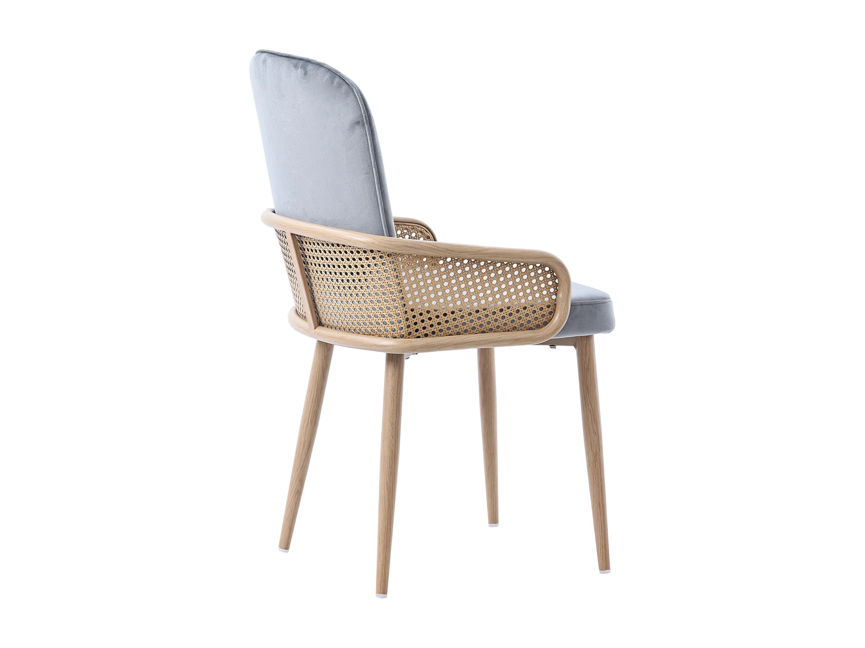 Set van 2 fluwelen eetkamerstoelen - 45 x 43 x 90 cm - rotan design - met 4 metalen poten - grijs