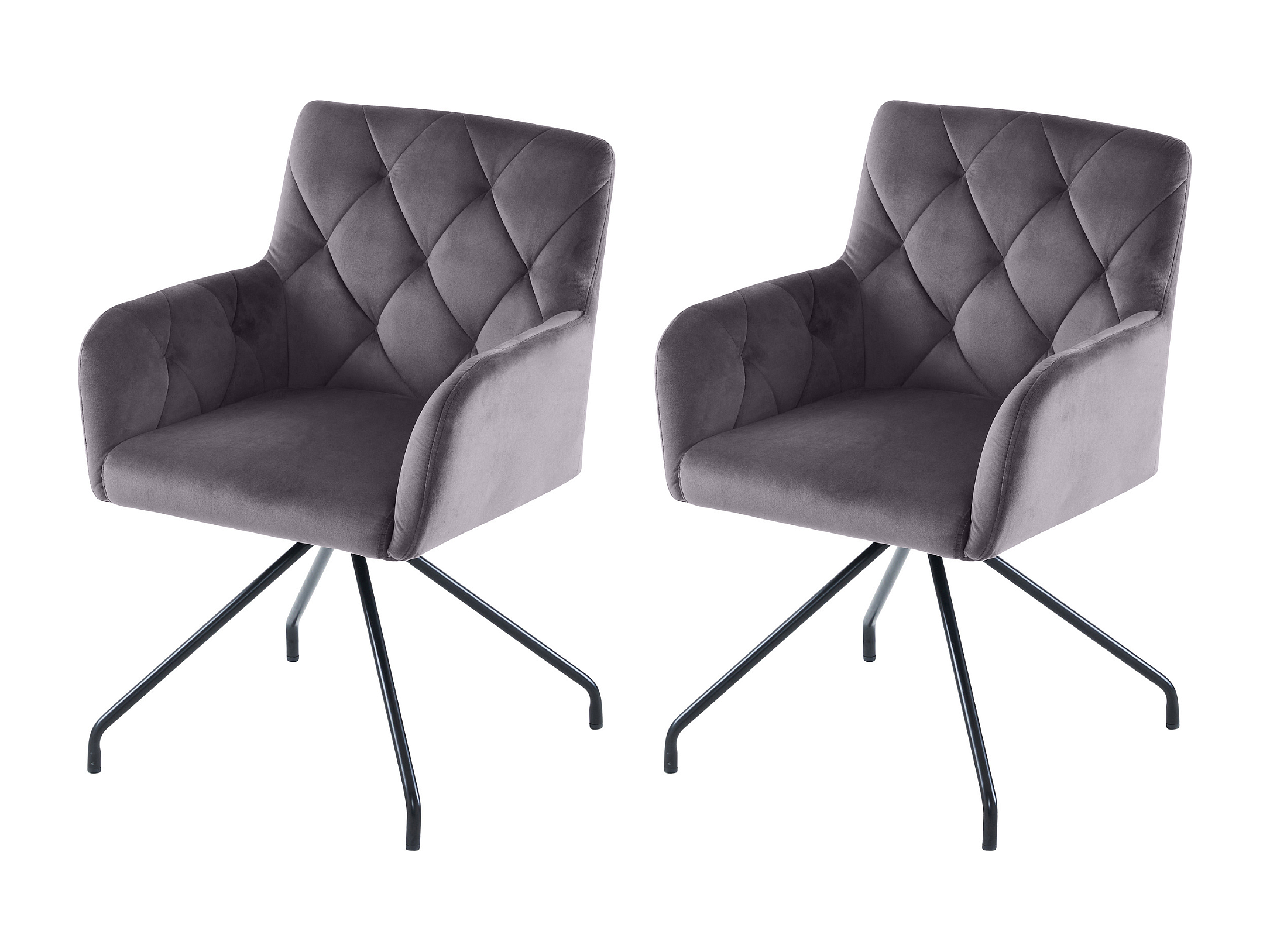 Set van 2 fluwelen eetkamerstoelen met armleuningen en rugleuning - metalen poten - grijs