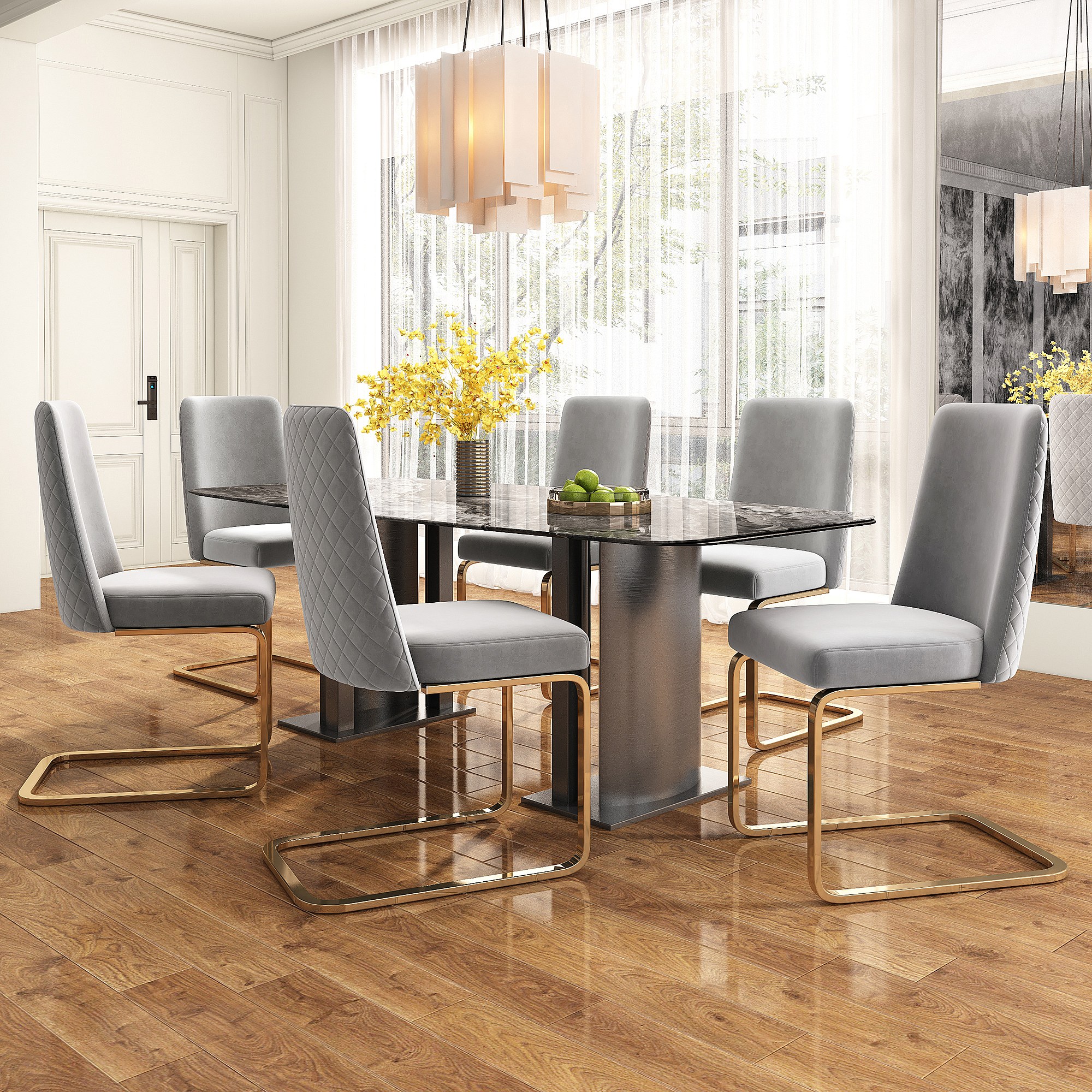 4. Elegant ontwerp: Deze fluwelen eetkamerstoel heeft een elegante uitstraling en een elegant ontwerp, in lijn met de trend van modern interieurdesign. Het combineert luxe en moderne stijl, maar is ook praktisch en benadrukt de smaak en schoonheid van de hele kamer.