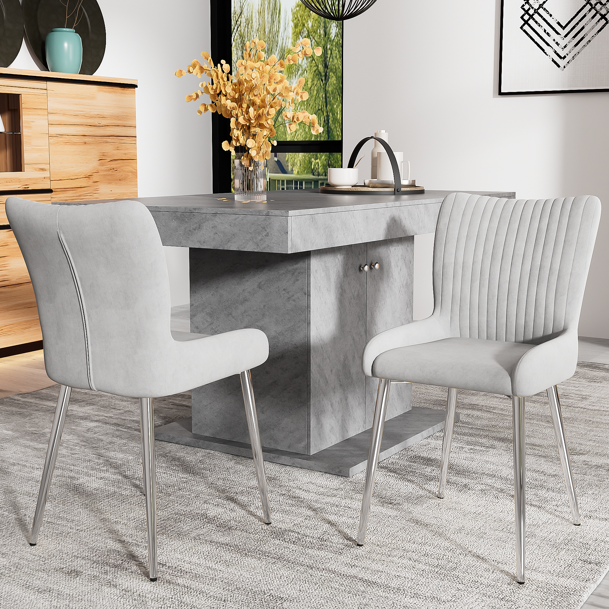 1. Luxe uitstraling: De fluwelen stof geeft de eetkamerstoel een luxueuze uitstraling en voegt een vleugje luxe toe aan uw woon- of slaapkamer. De textuur en glans van fluweel worden vaak geassocieerd met klasse en verfijning, waardoor deze eetkamerstoel een blikvanger in uw interieur wordt.