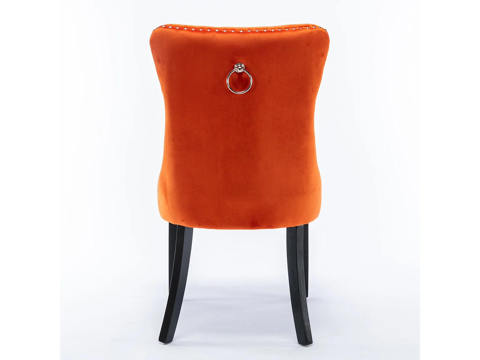 Set van 2 fluwelen stoelen - Houten poten en decoratieve nagels - Oranje kleur