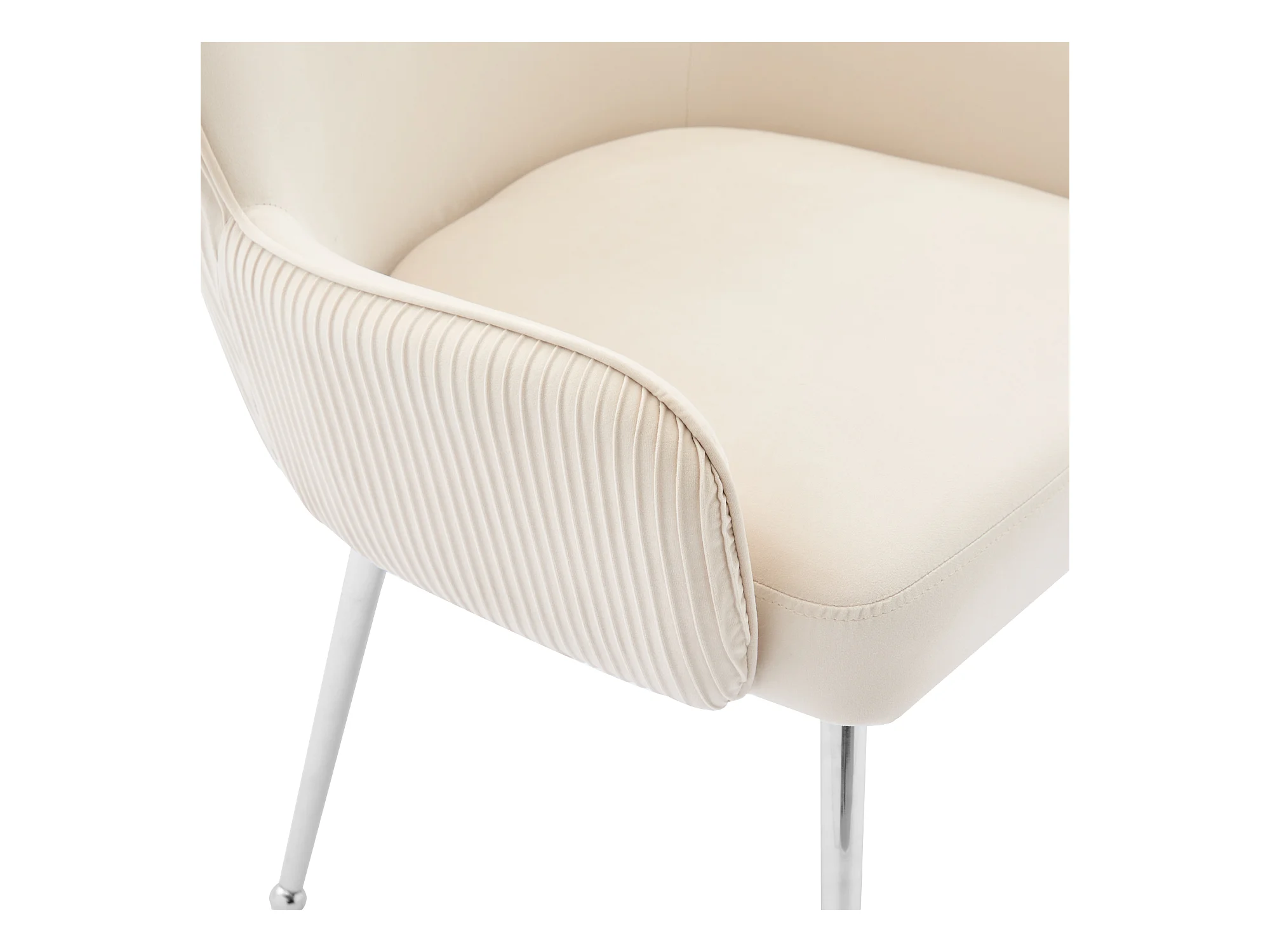 Set van 2 draaibare eetkamerstoelen met armleuningen en rugleuning - zilveren metalen poten - beige fluweel