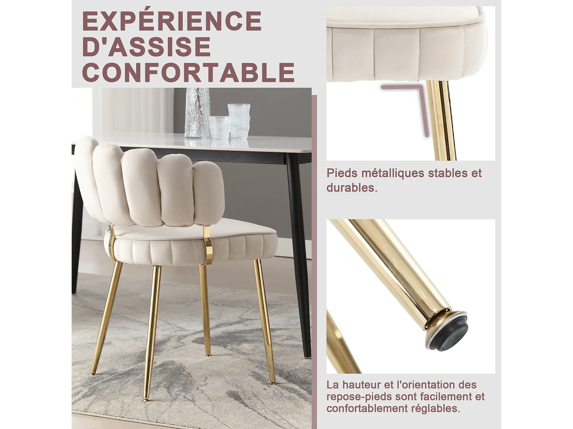 Set van 2 fluwelen stoelen - rugleuning met uitgesneden bloemblaadjespatroon - ideaal voor eetkamer of moderne woonkamer