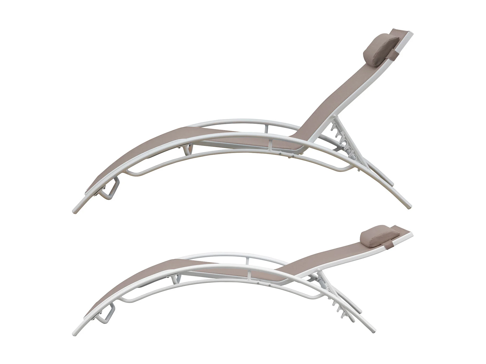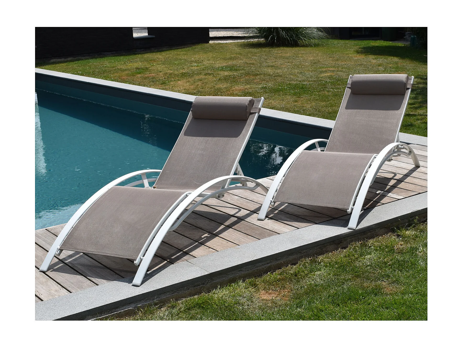 Set van 2 GALAPAGOS ligstoelen in taupe textilene - wit aluminium