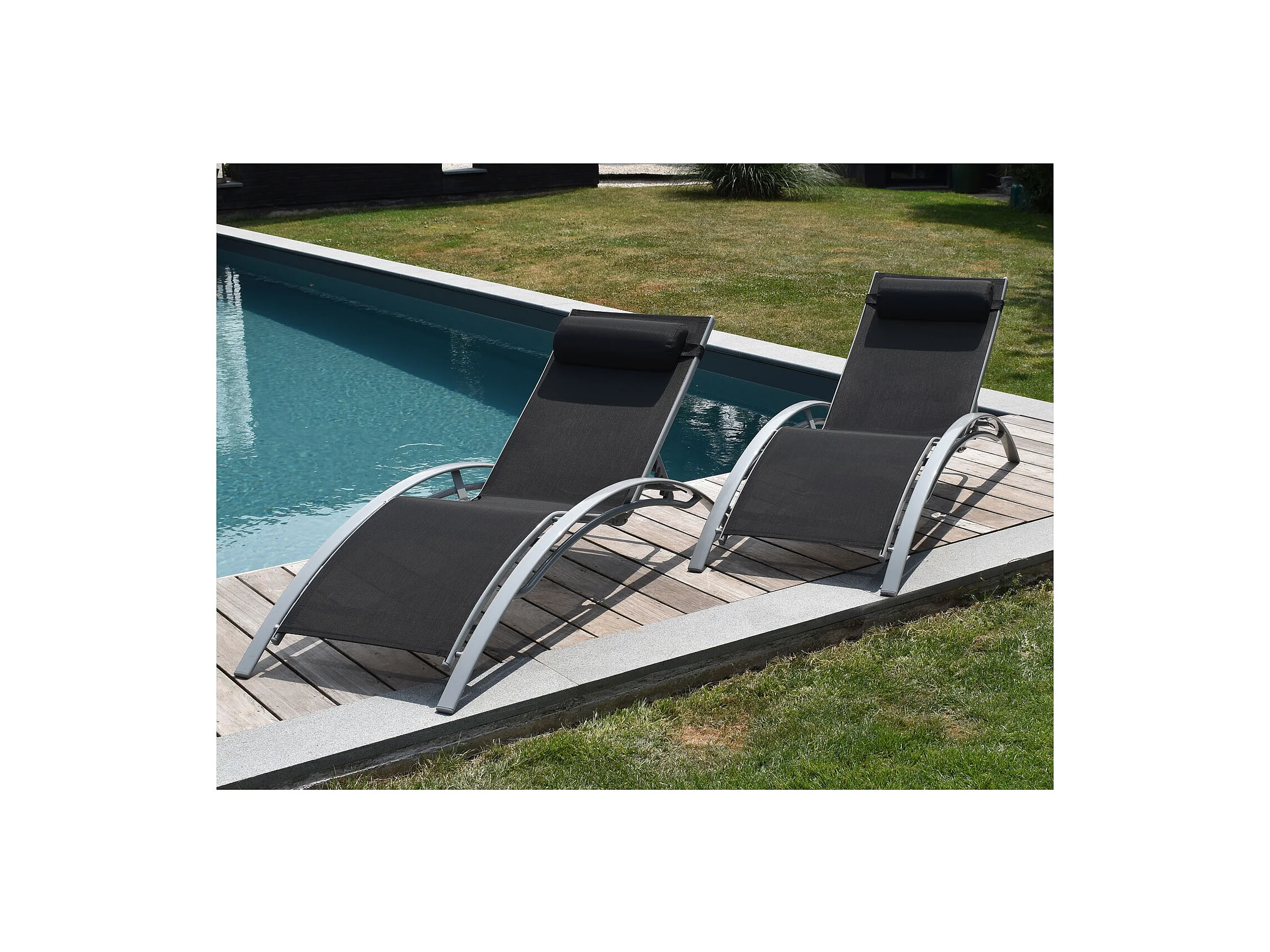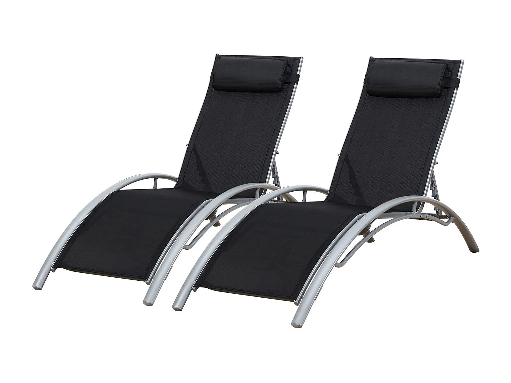 Set van 2 ligstoelen van zwart aluminium LISBOA - Comfortabel en robuust, 5 kantelposities, gemakkelijk te verplaatsen, ideaal om te ontspannen in de zon