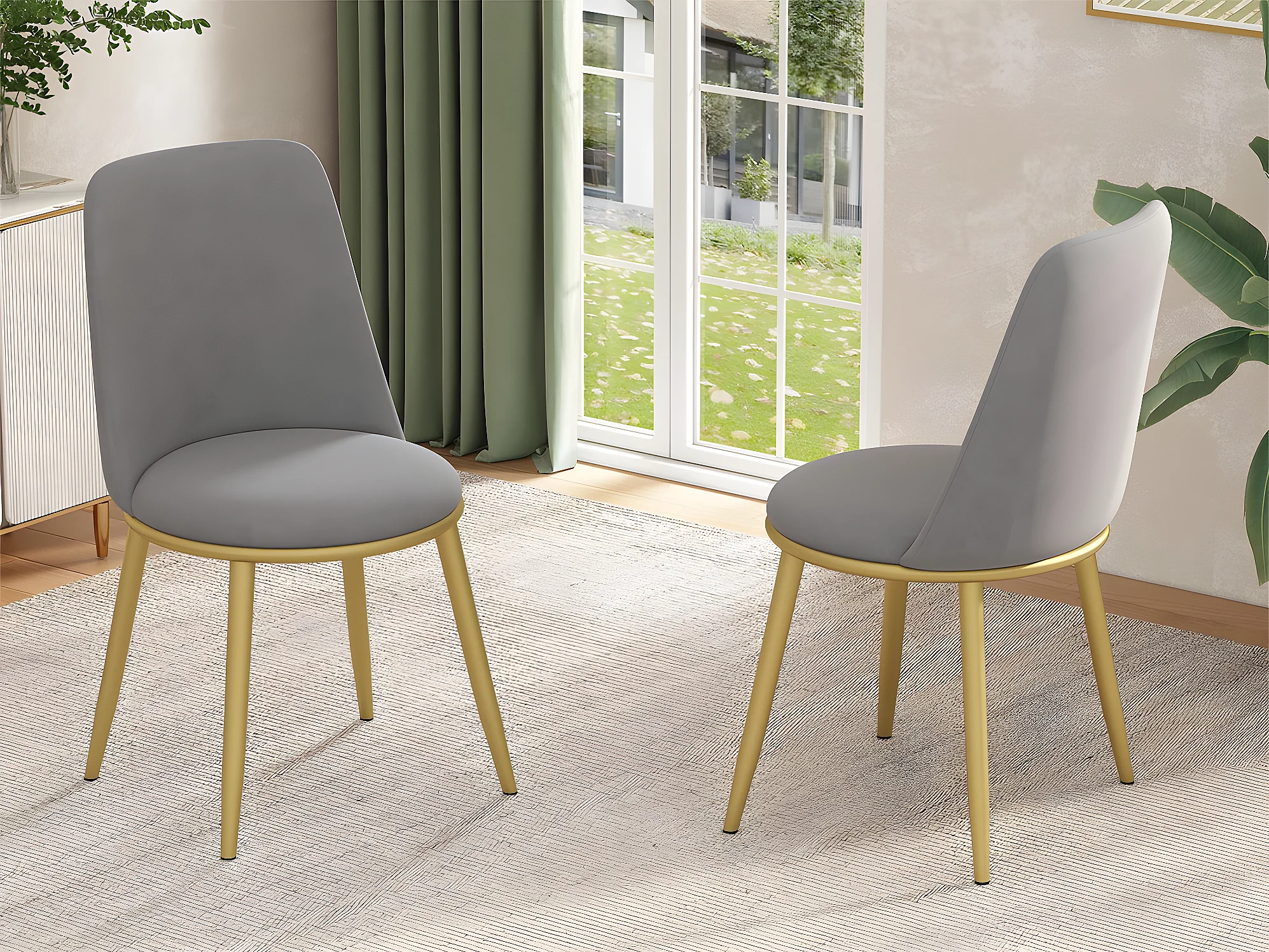 Set van 2 gestoffeerde fluwelen stoelen met rugleuning - goudkleurige metalen structuur - grijs