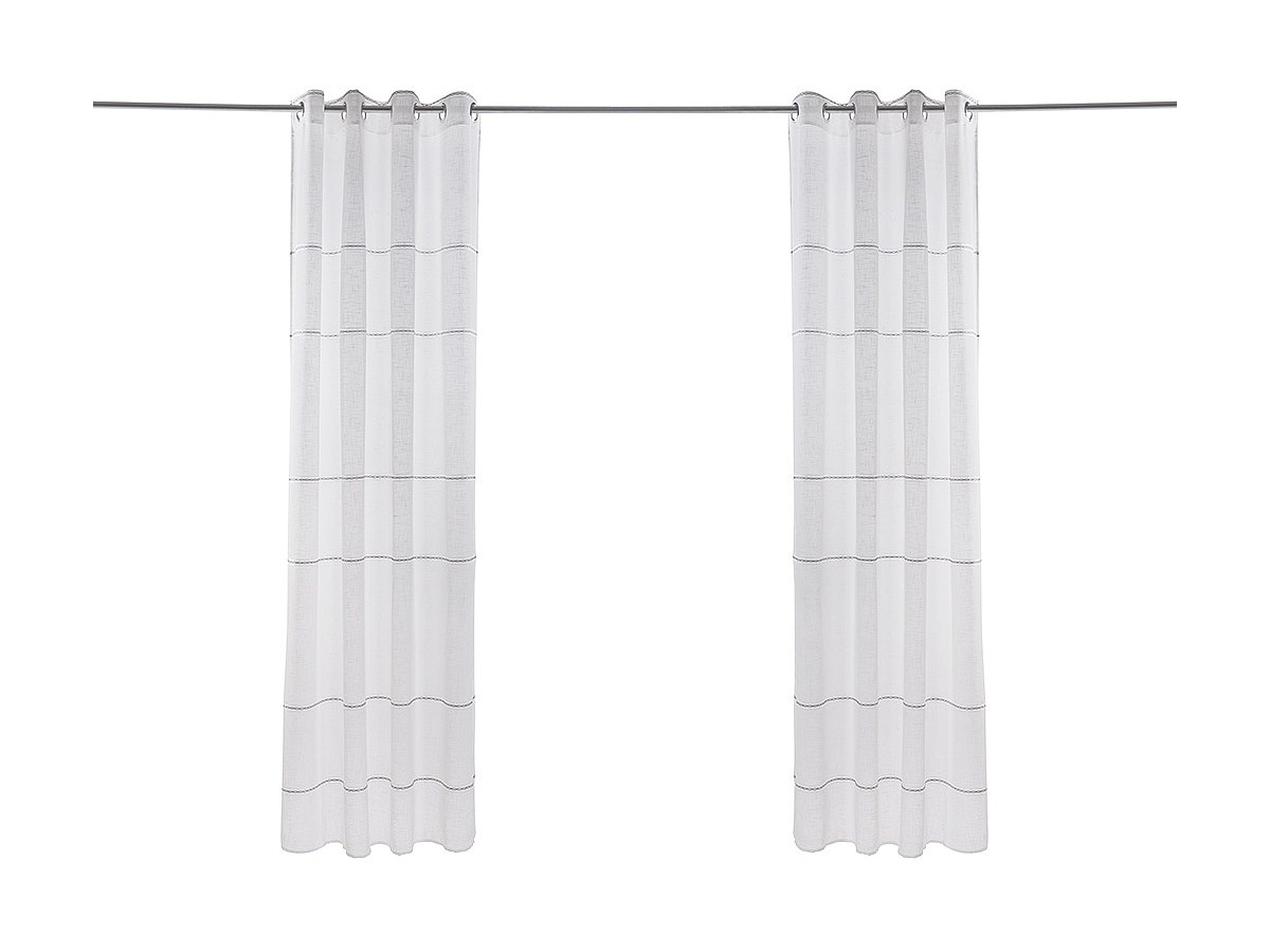 Set van 2 gordijnen met ringen SEAMUS - 100% polyester - 140x240cm - Wit en grijs